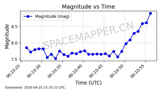 | STARLINK-3625 | 51777 | 51777 | 2022-02-25 同日期轨道 2022-017K 同批次轨道 | 在轨 | 95分钟 | 53.2173 | 538.857 | 540.601 | 0.0001260 | 2026-04-30 04:43:45 | ||