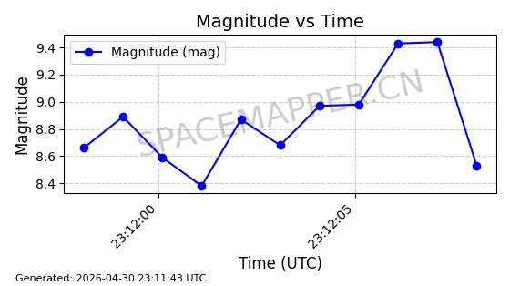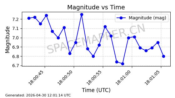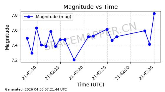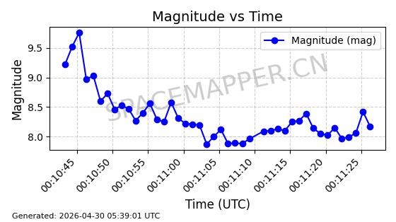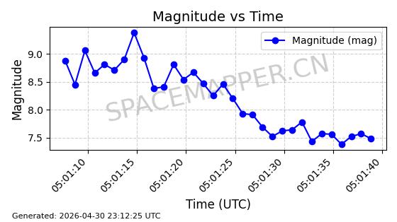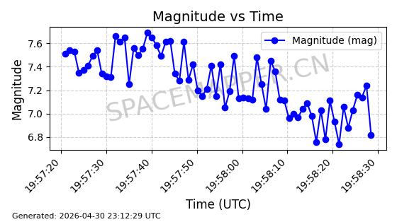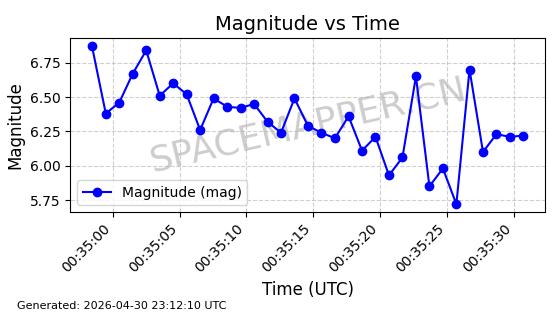 | STARLINK-3591 | 51870 | 51870 | 2022-03-03 同日期轨道 2022-022U 同批次轨道 | 在轨 | 95分钟 | 53.2165 | 539.025 | 540.483 | 0.0001053 | 2026-04-30 05:26:07 | ||