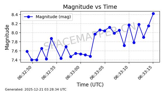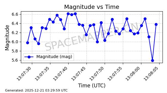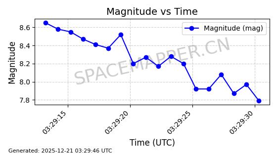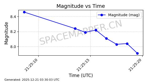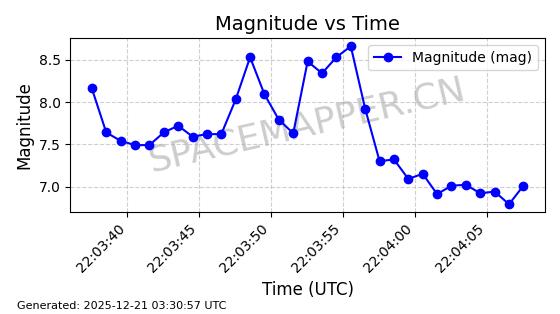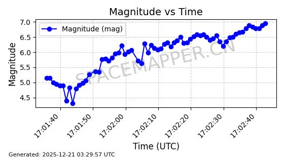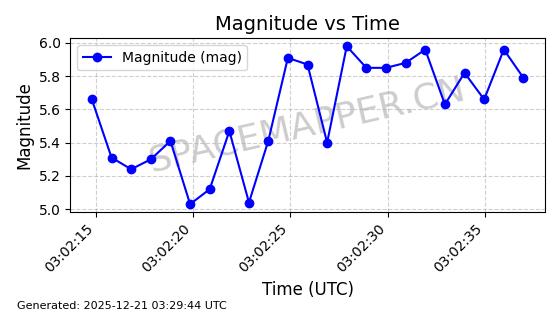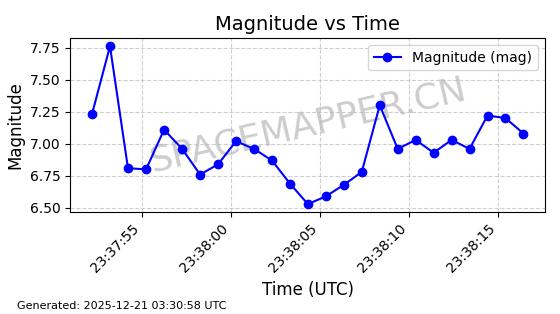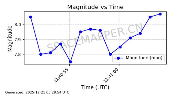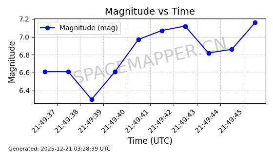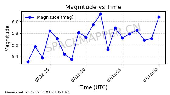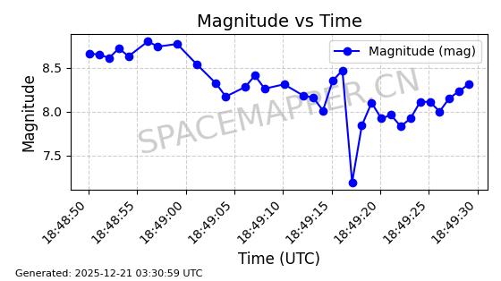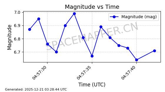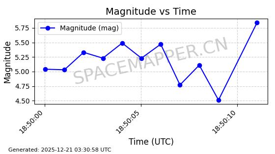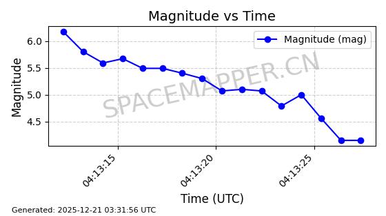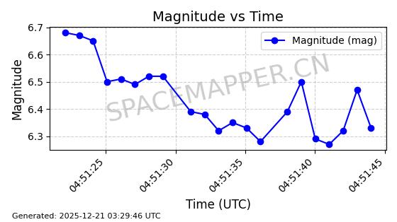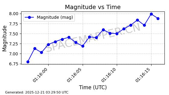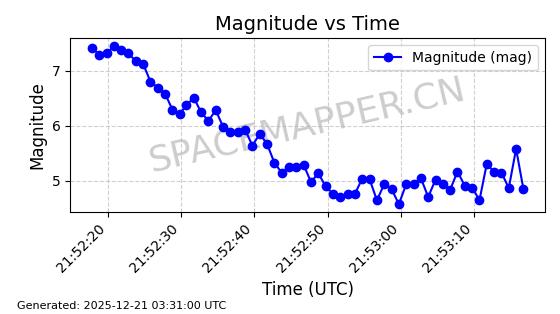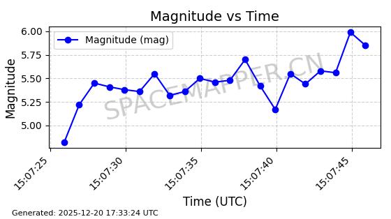 | STARLINK-3846 | 52647 | 52647 | 2022-05-14 同日期轨道 2022-052BB 同批次轨道 | 已陨落 | 88分钟 | 53.2042 | 172.553 | 175.479 | 0.0002232 | 2025-11-14 06:21:30 | ||