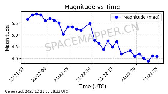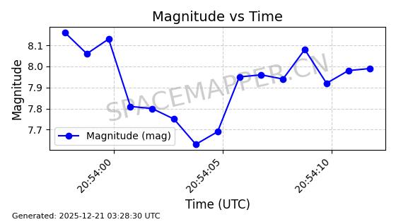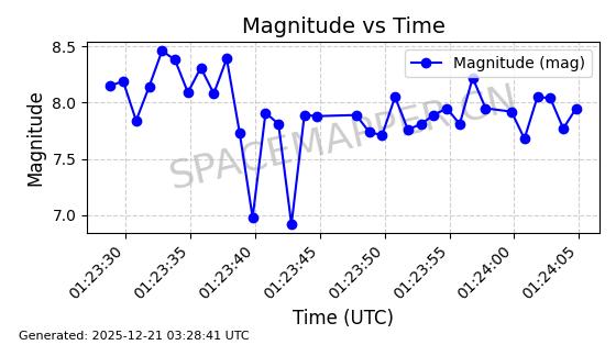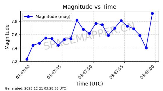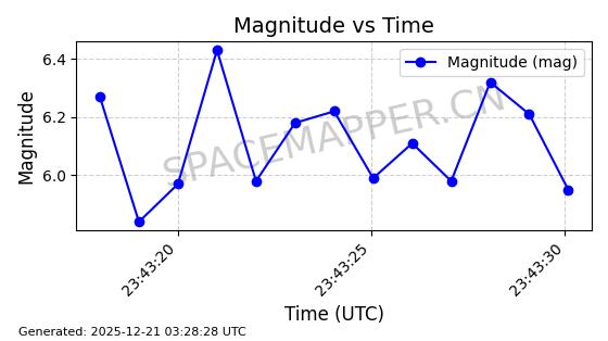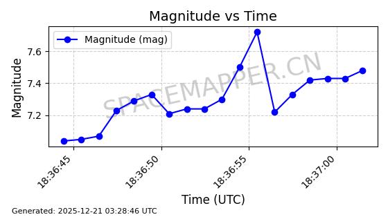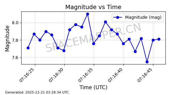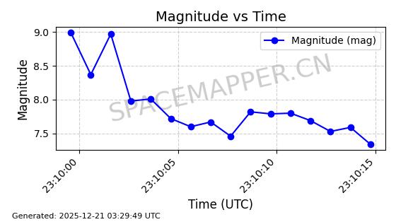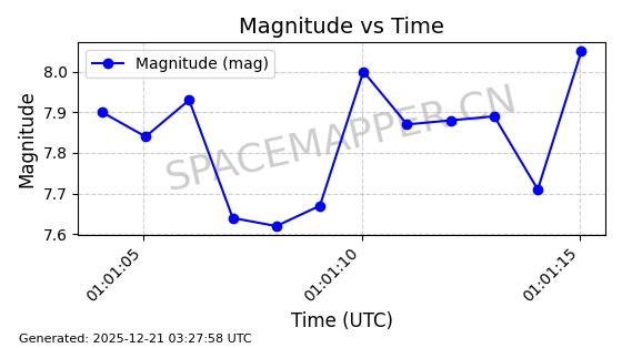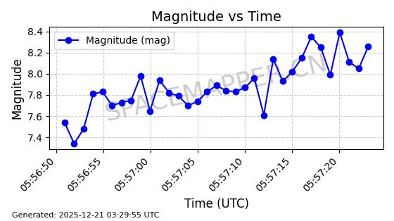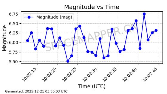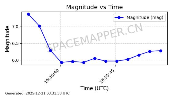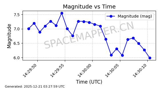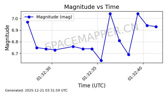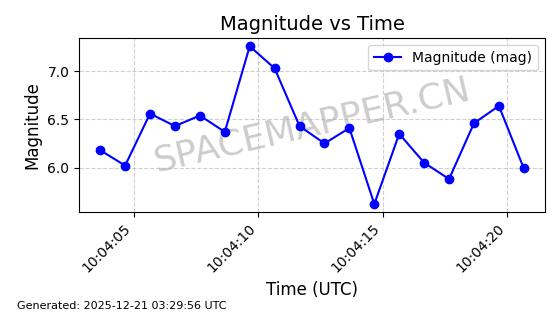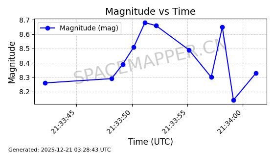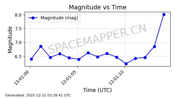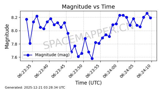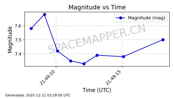| STARLINK-3846 | 52647 | 52647 | 2022-05-14 同日期轨道 2022-052BB 同批次轨道 | 已陨落 | 88分钟 | 53.2042 | 172.553 | 175.479 | 0.0002232 | 2025-11-14 06:21:30 | ||