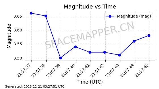 | STARLINK-3869 | 52547 | 52547 | 2022-05-13 同日期轨道 2022-051Q 同批次轨道 | 已陨落 | 87分钟 | 53.1897 | 138.333 | 148.585 | 0.0007860 | 2025-04-22 22:25:19 | ||