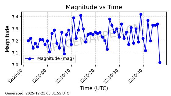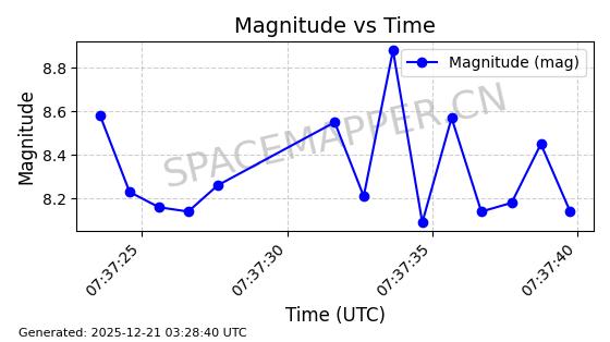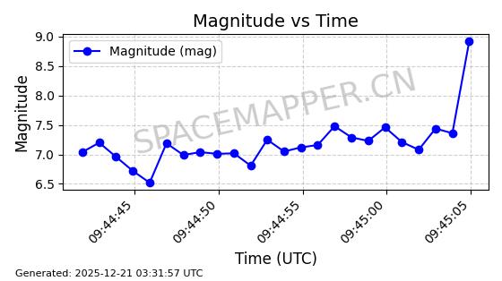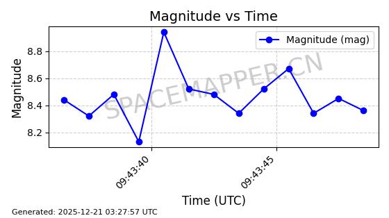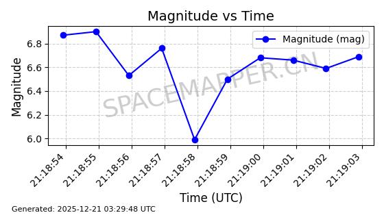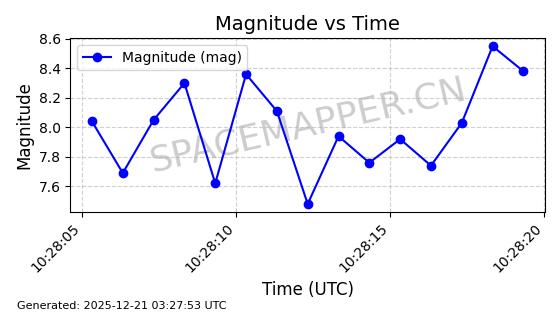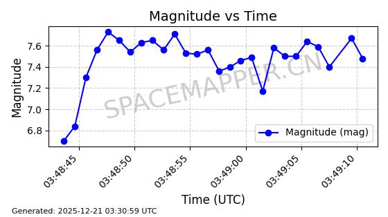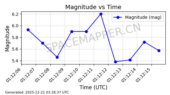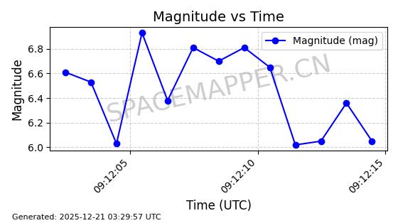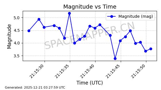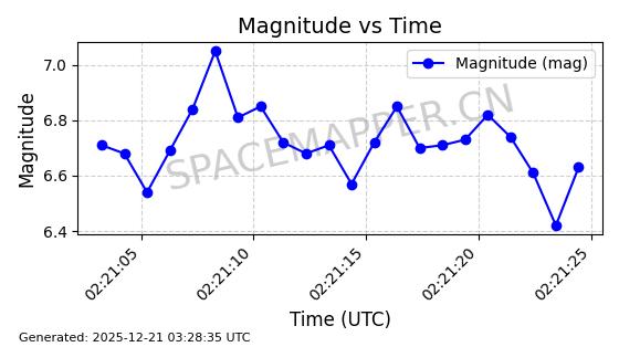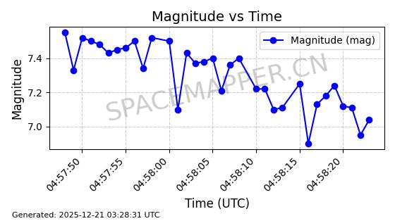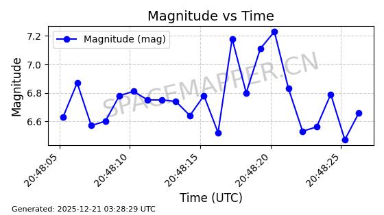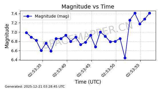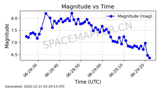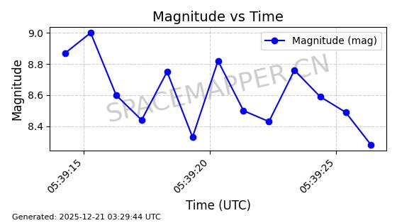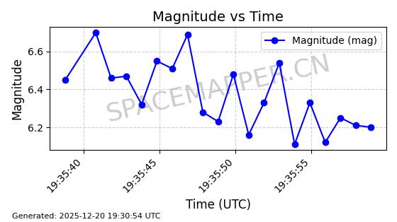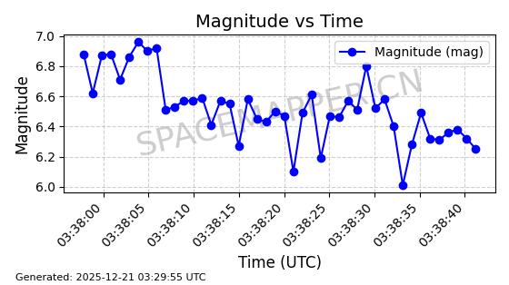 | STARLINK-3895 | 52583 | 52583 | 2022-05-13 同日期轨道 2022-051AZ 同批次轨道 | 在轨 | 95分钟 | 53.2181 | 538.731 | 540.723 | 0.0001439 | 2025-12-19 09:18:06 | ||