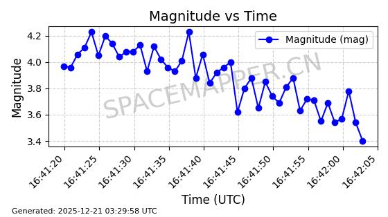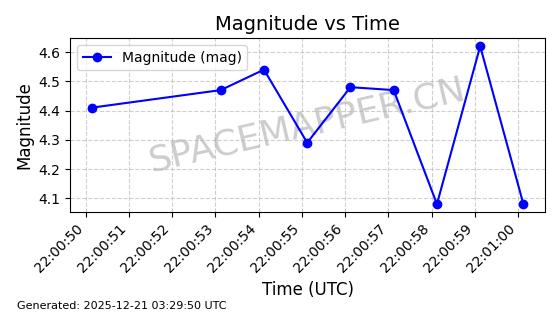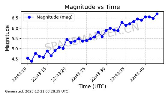 | STARLINK-3880 | 52334 | 52334 | 2022-04-29 同日期轨道 2022-045D 同批次轨道 | 在轨 | 95分钟 | 53.2170 | 538.759 | 540.751 | 0.0001439 | 2025-12-20 00:33:31 | ||
