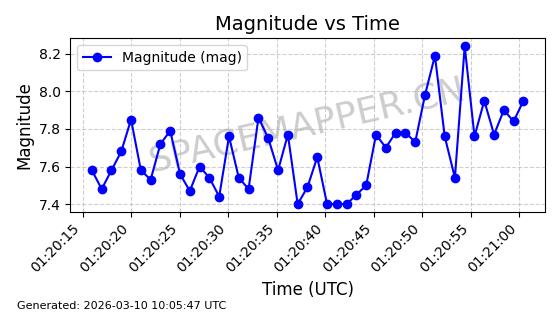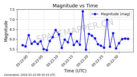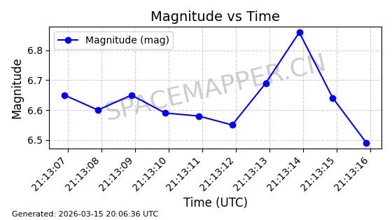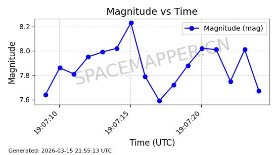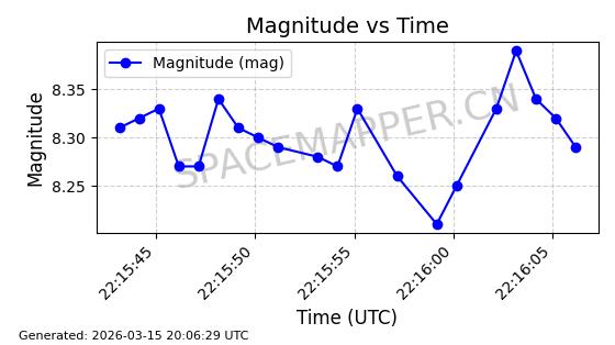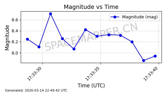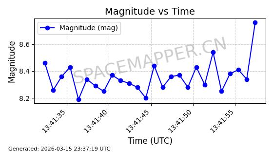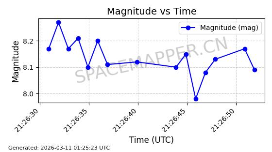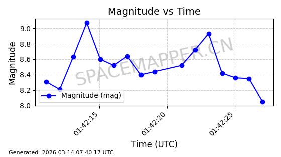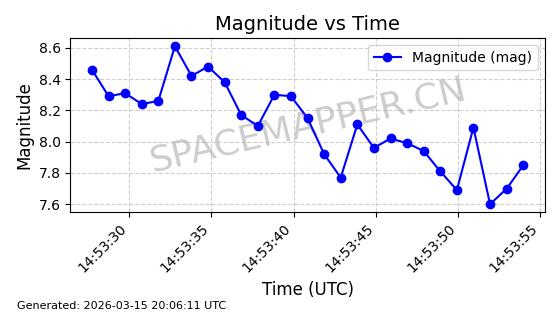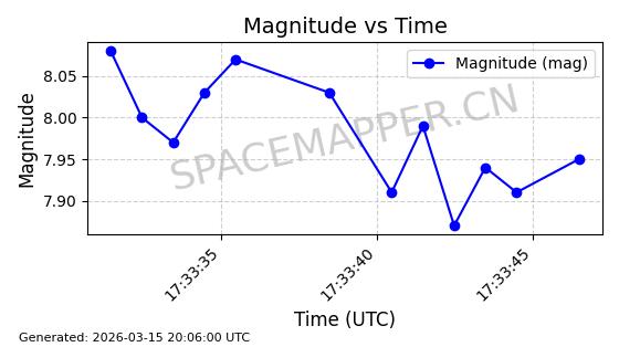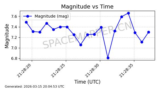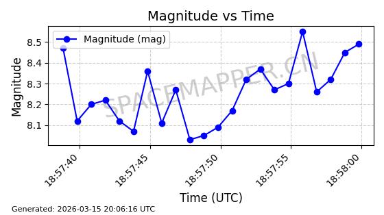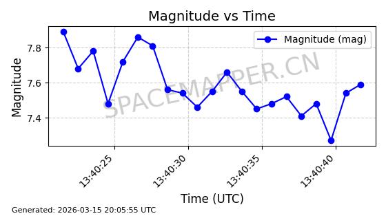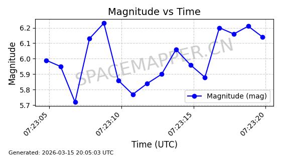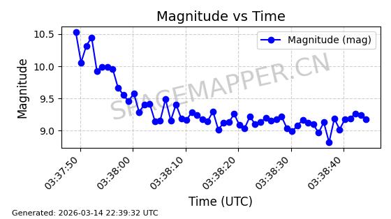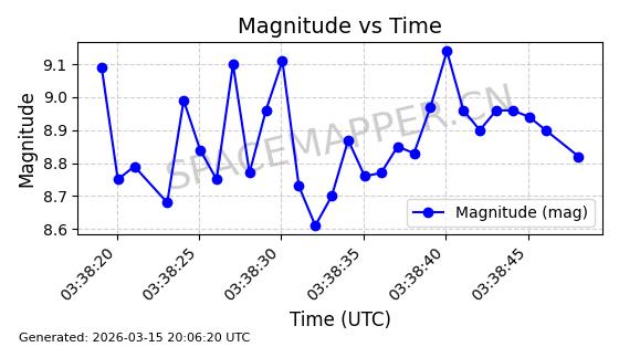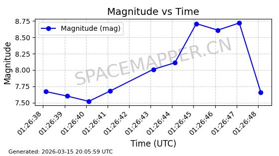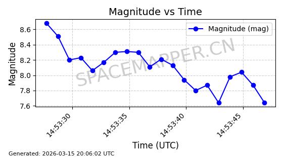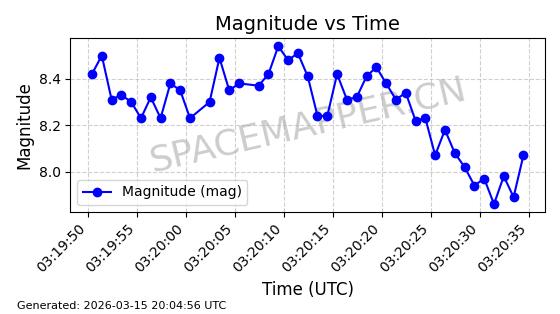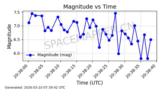 | 卫星名称 | AOE ID | NORAD ID | 发射日期 国际编号 | 在轨状态 | 轨道周期 | 轨道倾角 (度) | 近地点 (Km) | 远地点 (Km) | 偏心率 | 更新时间 (UTC) | 近期光变曲线 | 服务 |