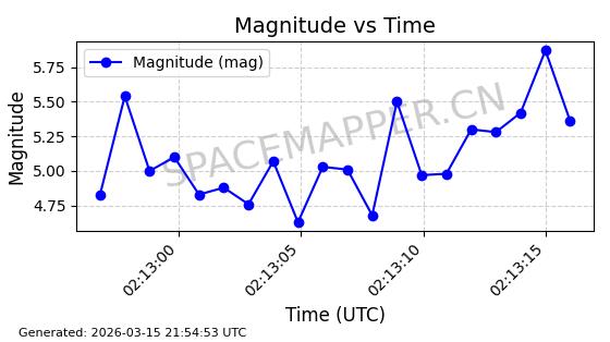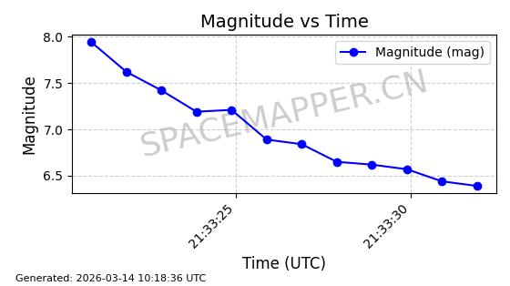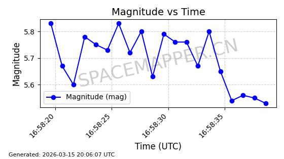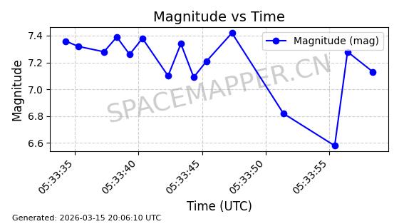 | STARLINK-5973 | 56916 | 56916 | 2023-06-12 同日期轨道 2023-083AS 同批次轨道 | 在轨 | 95分钟 | 43.0012 | 526.29 | 528.872 | 0.0001869 | 2026-03-15 06:00:01 | ||