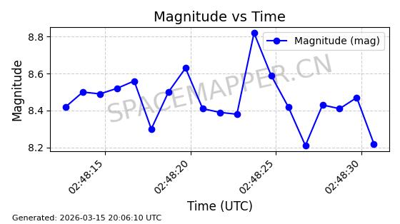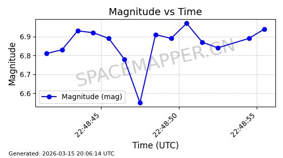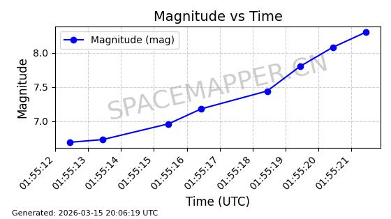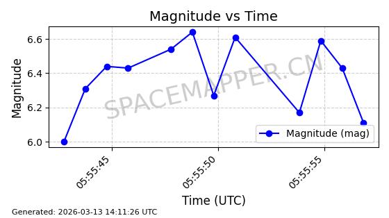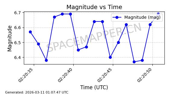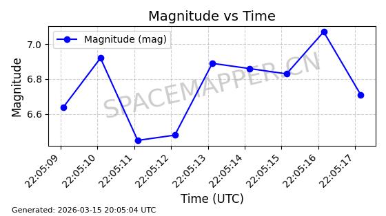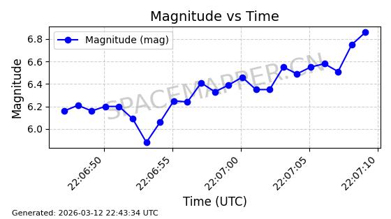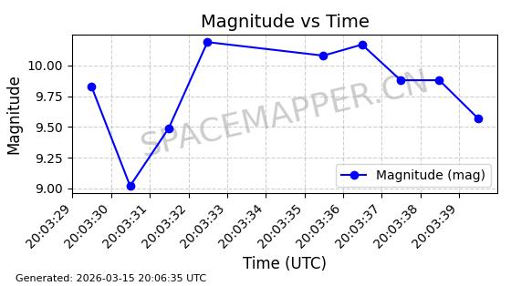 | STARLINK-6206 | 56876 | 56876 | 2023-06-12 同日期轨道 2023-083A 同批次轨道 | 在轨 | 96分钟 | 43.0006 | 548.681 | 551.117 | 0.0001758 | 2026-03-15 06:00:01 | ||