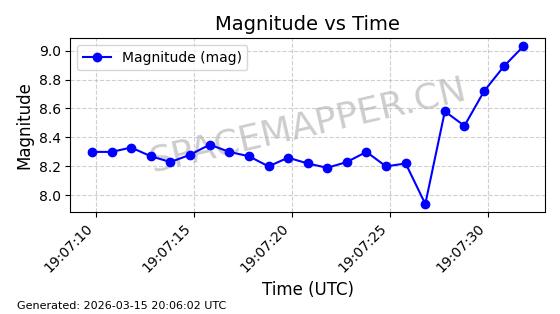 | STARLINK-6193 | 56904 | 56904 | 2023-06-12 同日期轨道 2023-083AE 同批次轨道 | 在轨 | 95分钟 | 42.9998 | 526.651 | 528.267 | 0.0001169 | 2026-03-15 06:00:01 | ||