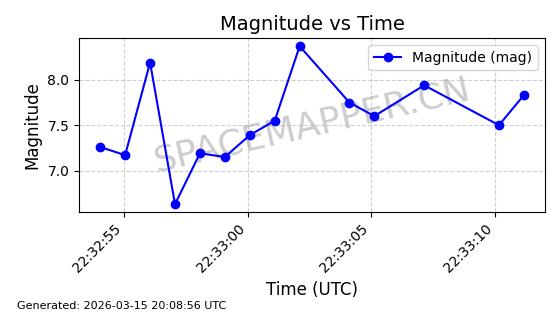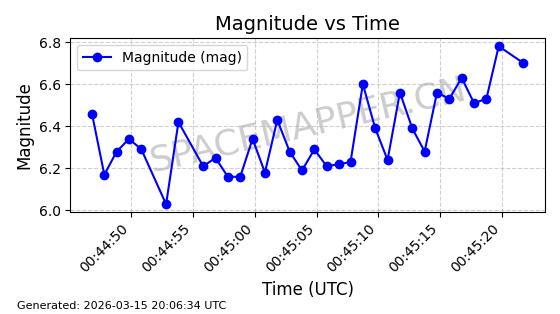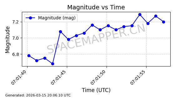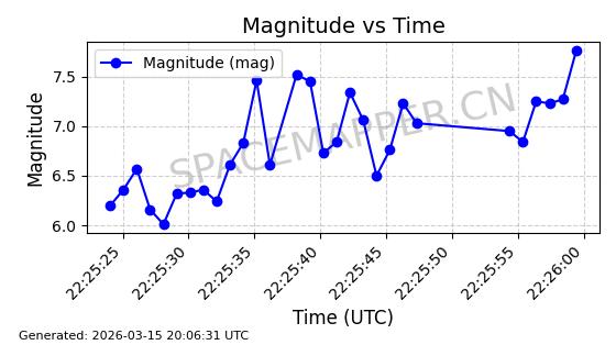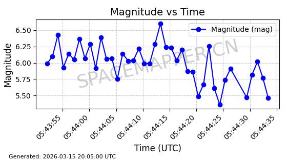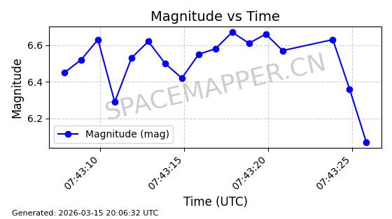 | STARLINK-6243 | 57080 | 57080 | 2023-06-22 同日期轨道 2023-088AJ 同批次轨道 | 在轨 | 95分钟 | 43.0005 | 525.04 | 526.412 | 0.0000993 | 2026-03-15 06:00:01 | ||