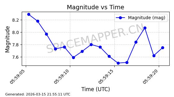 | STARLINK-5950 | 56913 | 56913 | 2023-06-12 同日期轨道 2023-083AP 同批次轨道 | 在轨 | 95分钟 | 42.9996 | 518.915 | 520.055 | 0.0000826 | 2026-03-15 06:00:01 | ||