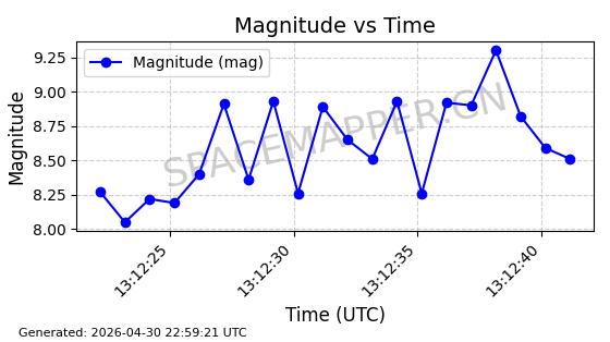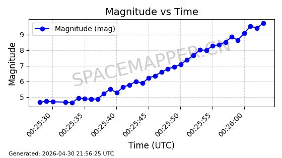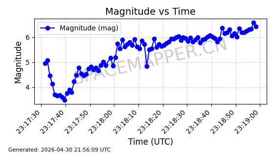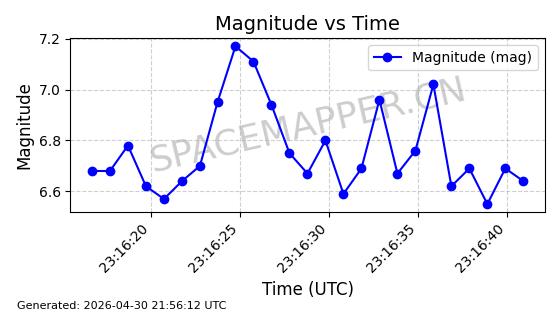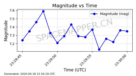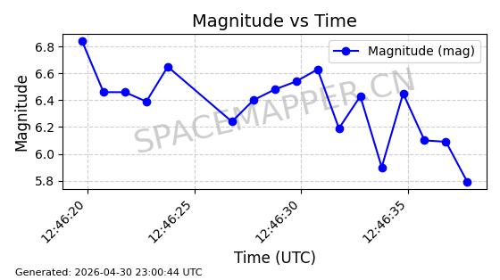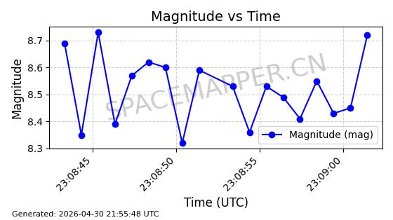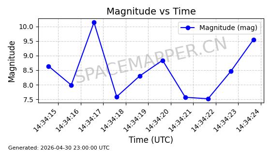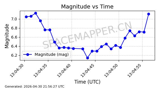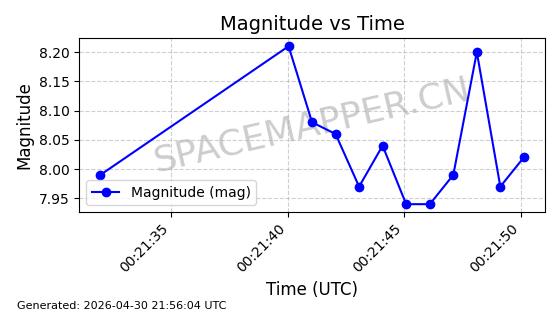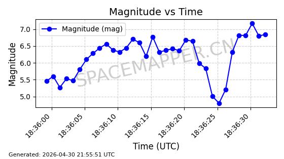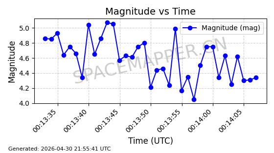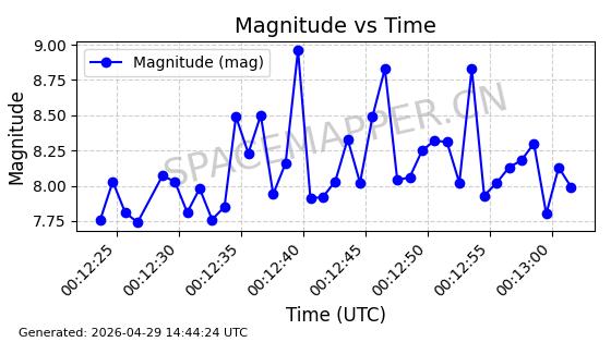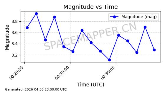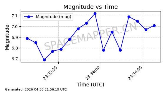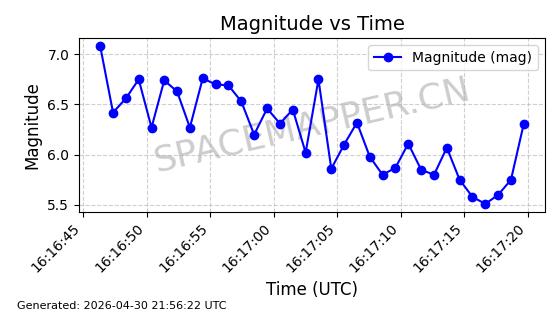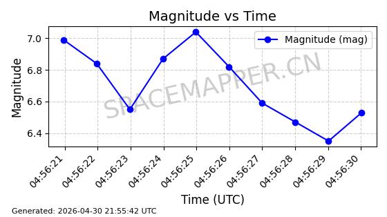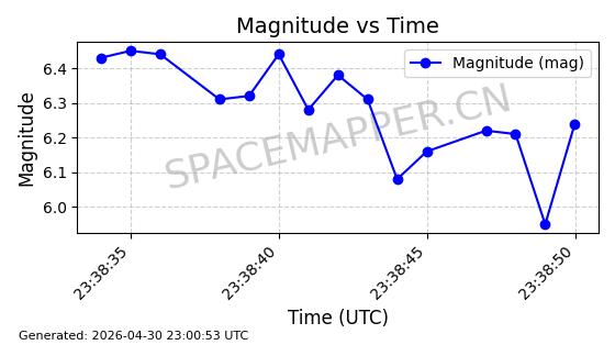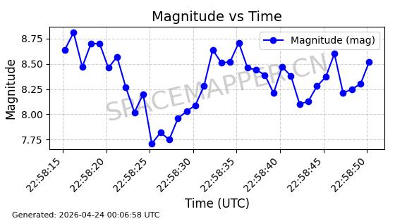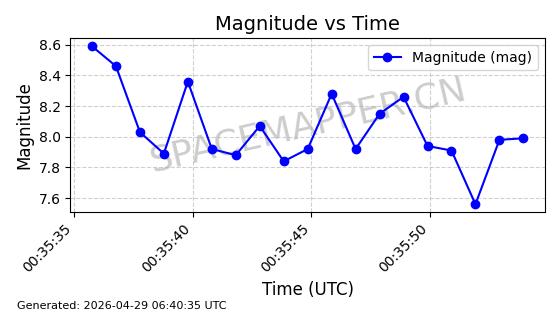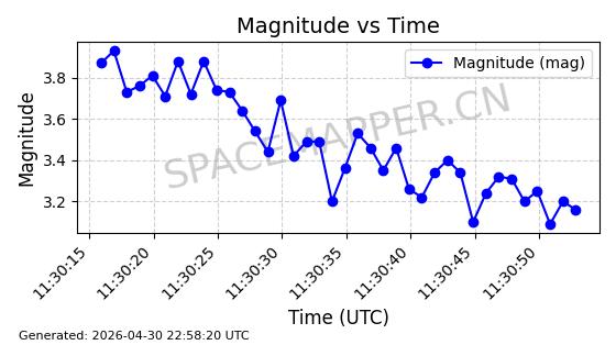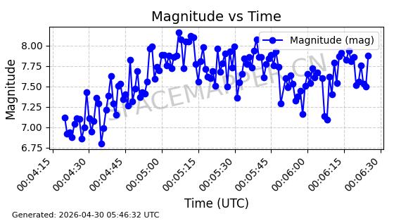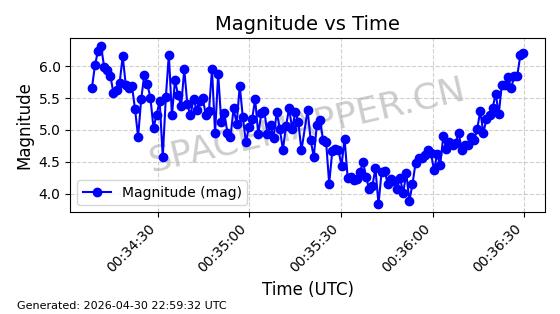 | STARLINK-3999 | 52704 | 52704 | 2022-05-18 同日期轨道 2022-053BA 同批次轨道 | 在轨 | 95分钟 | 53.2170 | 538.888 | 540.554 | 0.0001203 | 2026-04-30 02:12:00 | ||