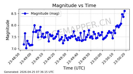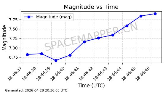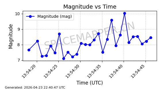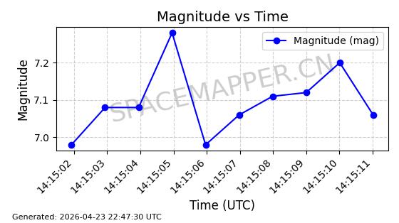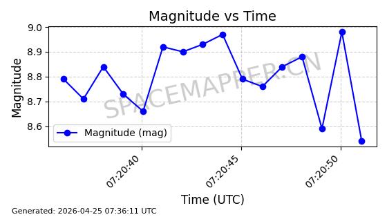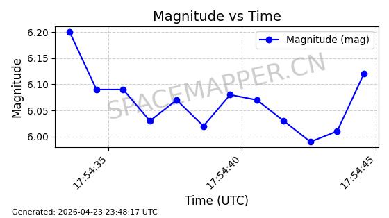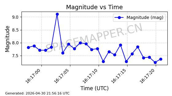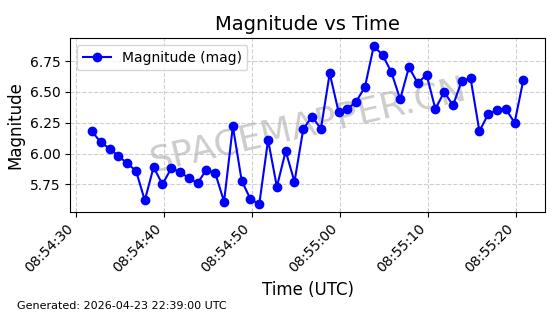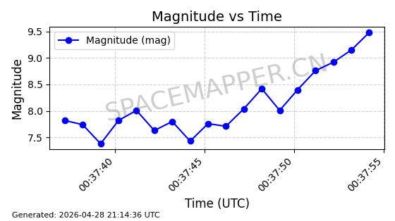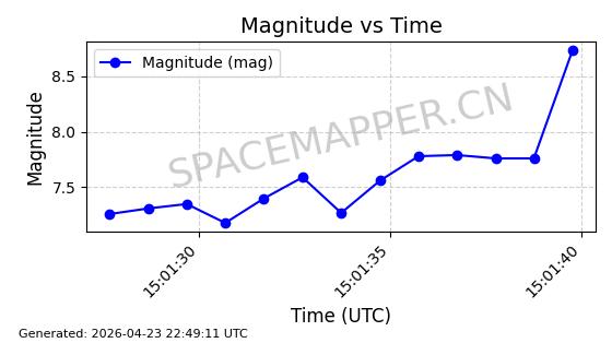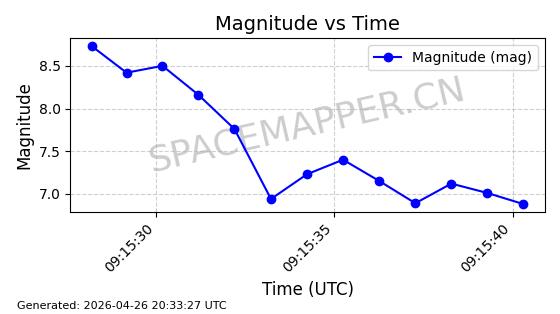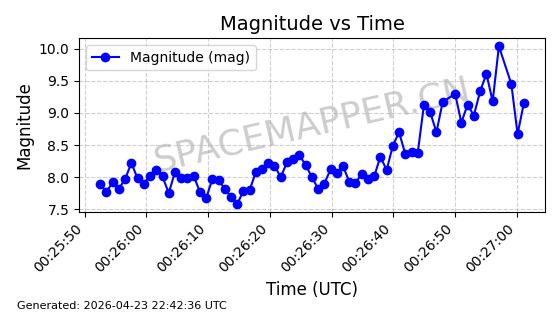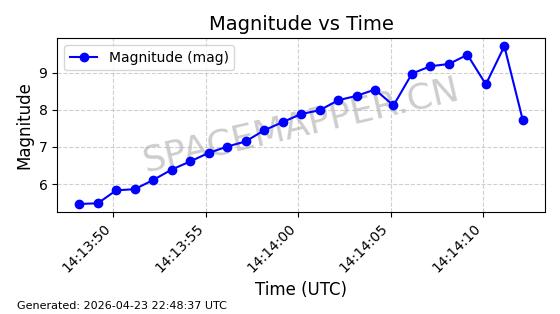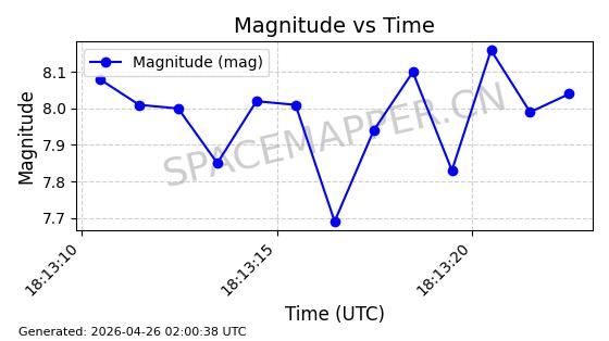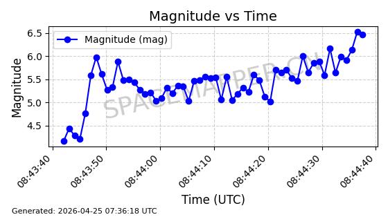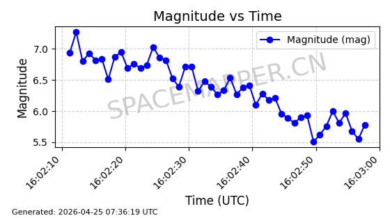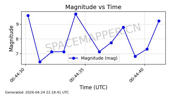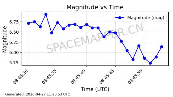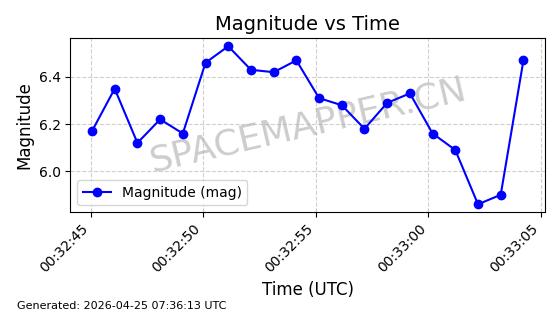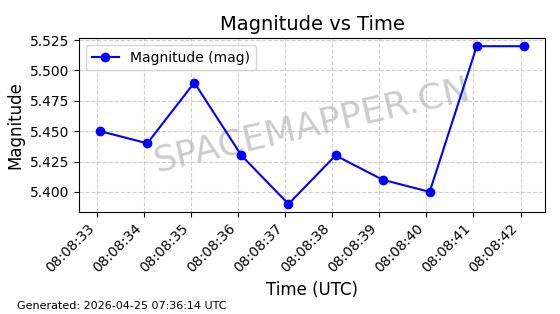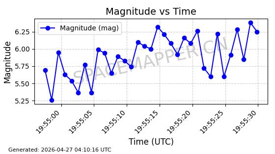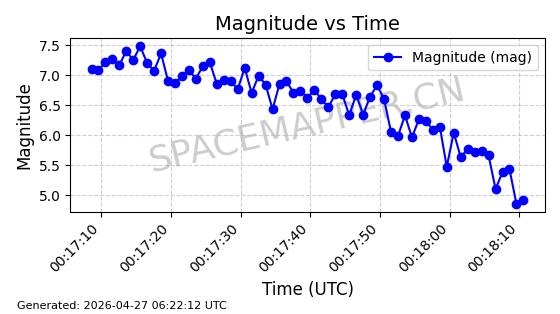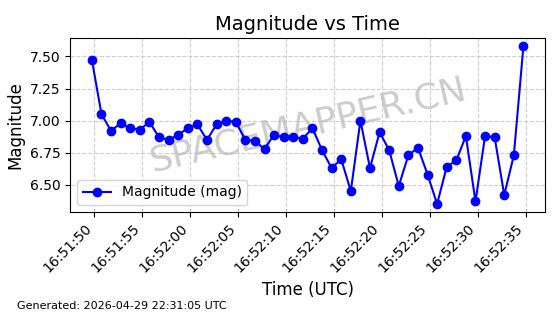 | STARLINK-3920 | 52575 | 52575 | 2022-05-13 同日期轨道 2022-051AR 同批次轨道 | 已陨落 | 87分钟 | 53.1809 | 133.857 | 138.057 | 0.0003223 | 2026-02-19 13:54:55 | ||