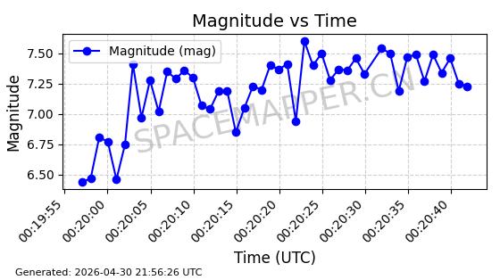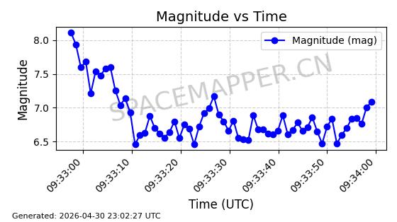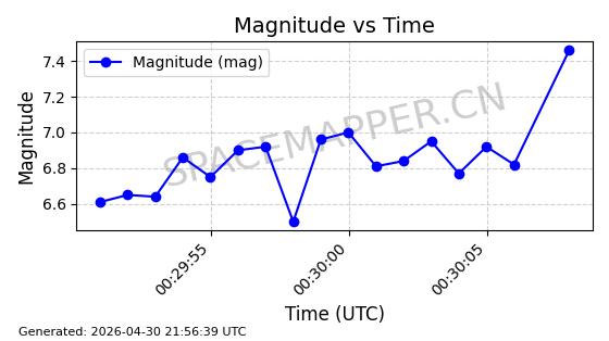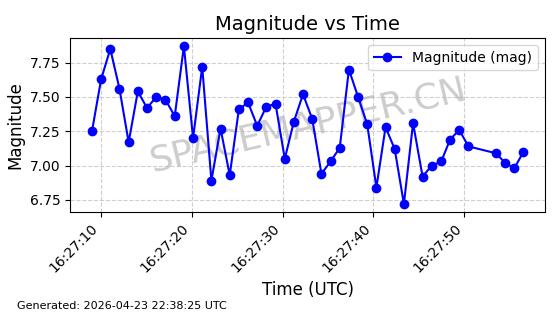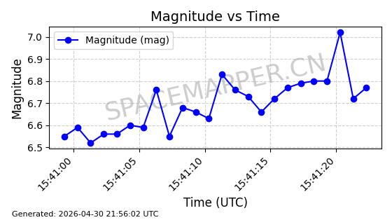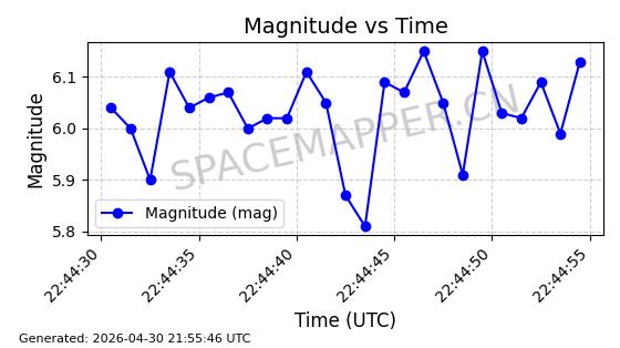 | STARLINK-3970 | 52706 | 52706 | 2022-05-18 同日期轨道 2022-053BC 同批次轨道 | 在轨 | 95分钟 | 53.2176 | 538.836 | 540.476 | 0.0001184 | 2026-04-30 02:01:24 | ||