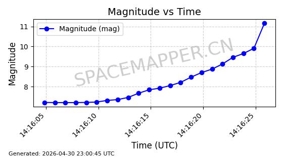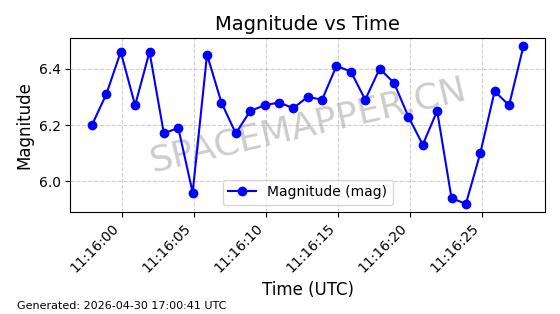| STARLINK-3988 | 52625 | 52625 | 2022-05-14 同日期轨道 2022-052AD 同批次轨道 | 在轨 | 95分钟 | 53.2186 | 538.719 | 540.795 | 0.0001500 | 2026-04-30 04:41:04 | ||