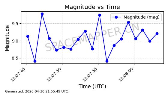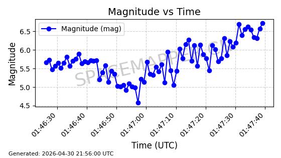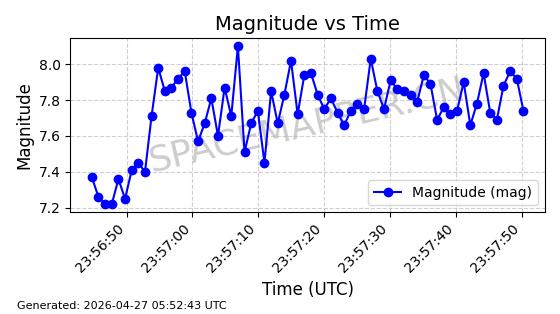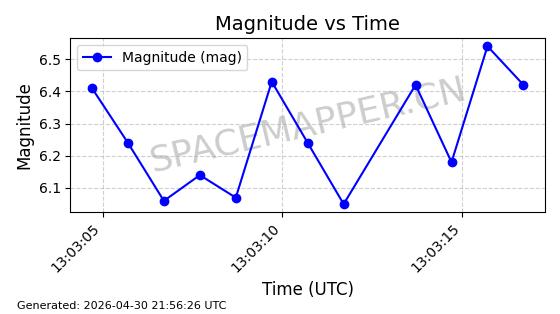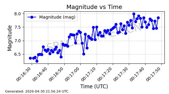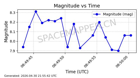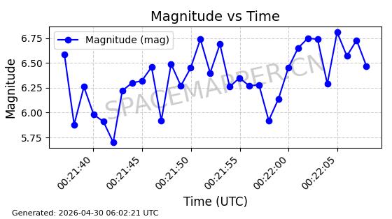 | STARLINK-3903 | 52462 | 52462 | 2022-05-06 同日期轨道 2022-049M 同批次轨道 | 在轨 | 95分钟 | 53.2173 | 538.871 | 540.619 | 0.0001263 | 2026-04-30 04:54:22 | ||