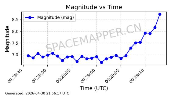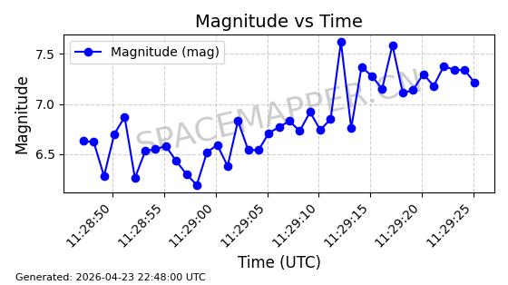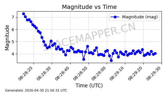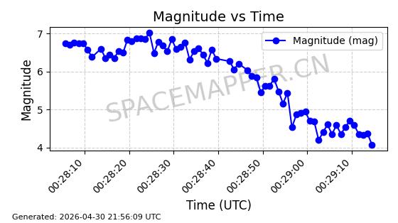 | STARLINK-4001 | 52628 | 52628 | 2022-05-14 同日期轨道 2022-052AG 同批次轨道 | 在轨 | 95分钟 | 53.2188 | 538.761 | 540.697 | 0.0001399 | 2026-04-30 02:23:57 | ||