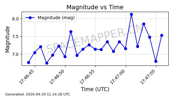 | STARLINK-3972 | 52669 | 52669 | 2022-05-18 同日期轨道 2022-053P 同批次轨道 | 在轨 | 95分钟 | 53.2174 | 538.777 | 540.661 | 0.0001361 | 2026-04-29 20:24:56 | ||