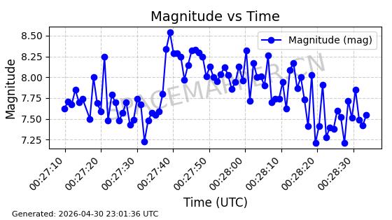 | 卫星名称 | AOE ID | NORAD ID | 发射日期 国际编号 | 在轨状态 | 轨道周期 | 轨道倾角 (度) | 近地点 (Km) | 远地点 (Km) | 偏心率 | 更新时间 (UTC) | 近期光变曲线 | 服务 |
