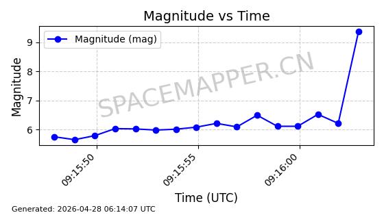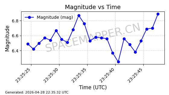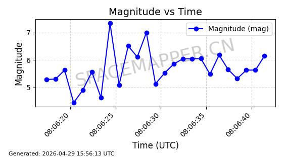 | STARLINK-3928 | 52606 | 52606 | 2022-05-14 同日期轨道 2022-052J 同批次轨道 | 在轨 | 95分钟 | 53.2181 | 538.757 | 540.731 | 0.0001426 | 2026-04-30 04:29:08 | ||