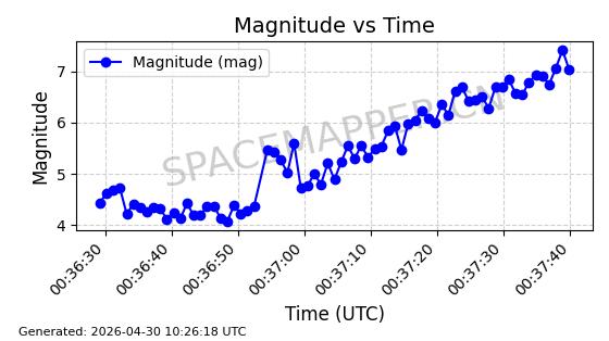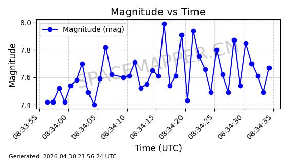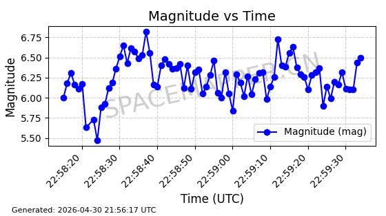| STARLINK-3974 | 52634 | 52634 | 2022-05-14 同日期轨道 2022-052AN 同批次轨道 | 在轨 | 95分钟 | 53.2180 | 538.687 | 540.861 | 0.0001570 | 2026-04-30 04:19:53 | ||
