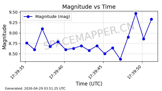 | STARLINK-3951 | 52533 | 52533 | 2022-05-13 同日期轨道 2022-051A 同批次轨道 | 已陨落 | 87分钟 | 53.1943 | 140.189 | 144.451 | 0.0003268 | 2025-01-17 19:41:37 | ![]() | |
