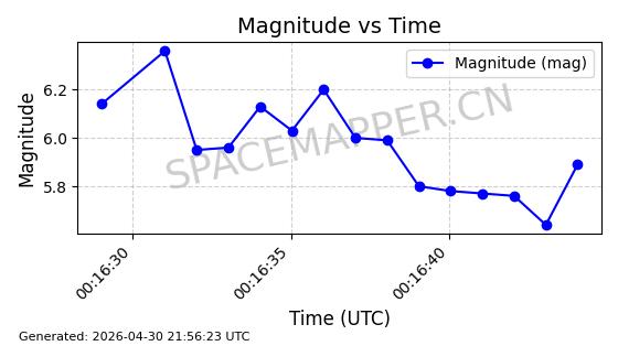 | STARLINK-3916 | 52492 | 52492 | 2022-05-06 同日期轨道 2022-049AT 同批次轨道 | 在轨 | 95分钟 | 53.2158 | 538.94 | 540.626 | 0.0001218 | 2026-04-30 03:45:26 | ||