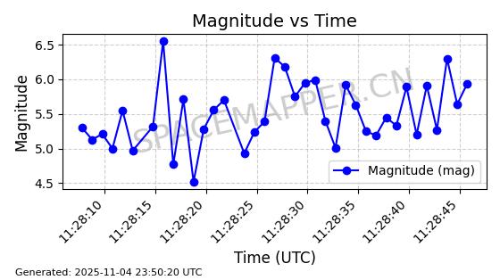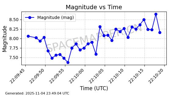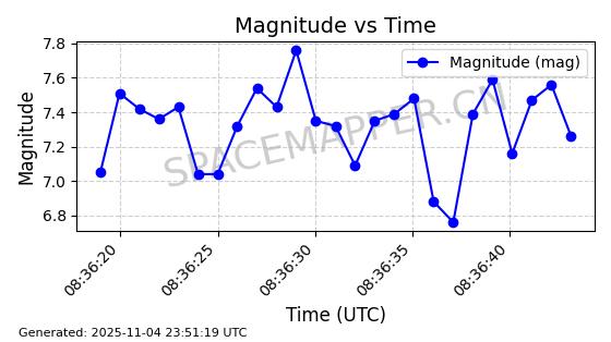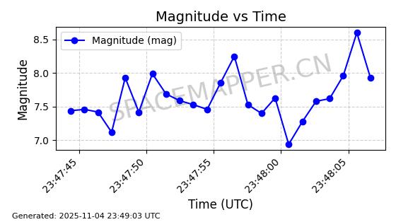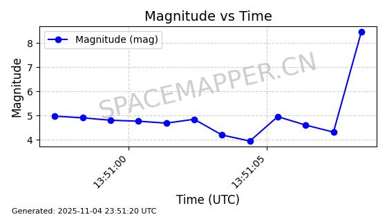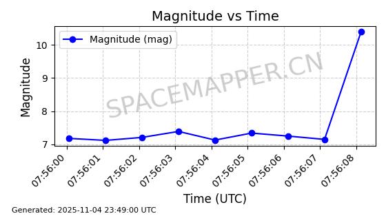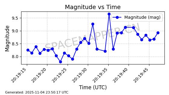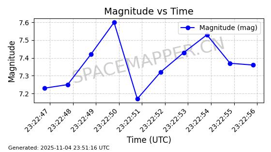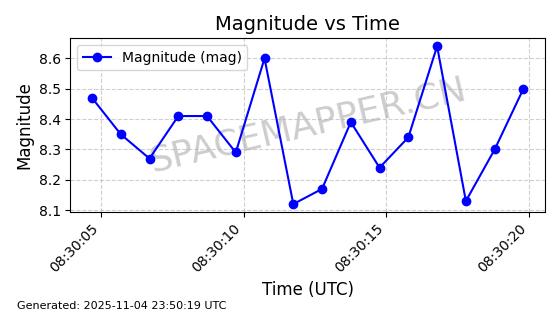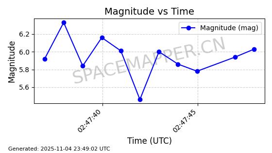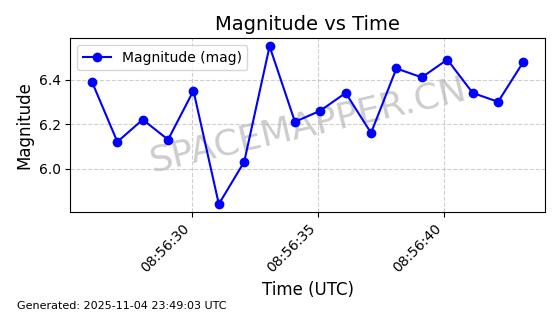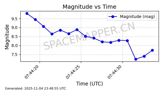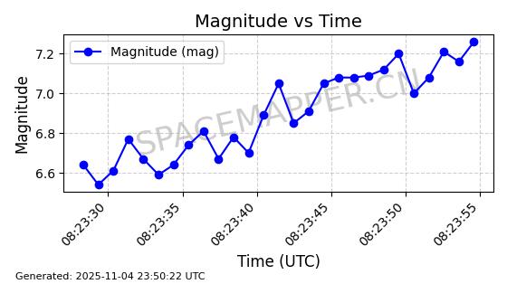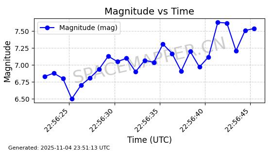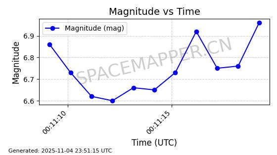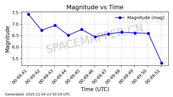 | STARLINK-4028 | 52677 | 52677 | 2022-05-18 同日期轨道 2022-053X 同批次轨道 | 已陨落 | 88分钟 | 53.2050 | 146.826 | 155.53 | 0.0006665 | 2025-08-11 03:49:37 | ||