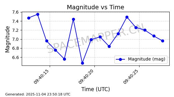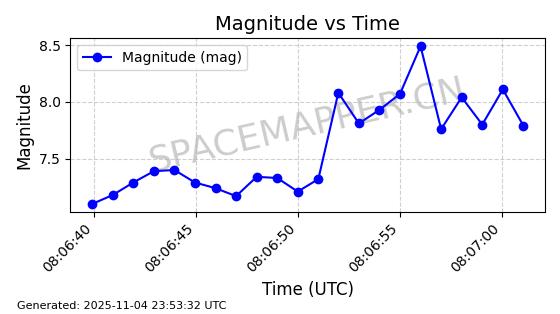 | STARLINK-4059 | 53250 | 53250 | 2022-07-24 同日期轨道 2022-086J 同批次轨道 | 在轨 | 95分钟 | 53.2175 | 538.739 | 540.755 | 0.0001456 | 2025-11-03 23:45:06 | ||