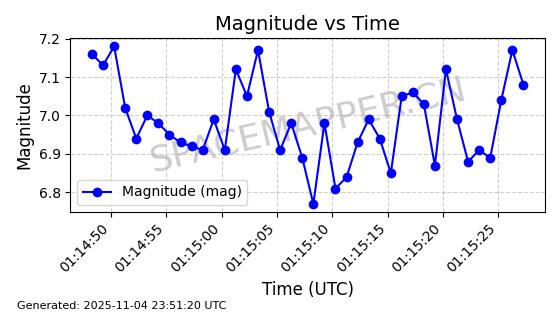| STARLINK-4015 | 52616 | 52616 | 2022-05-14 同日期轨道 2022-052U 同批次轨道 | 在轨 | 95分钟 | 53.2153 | 538.731 | 540.795 | 0.0001491 | 2025-11-04 03:52:11 | ||