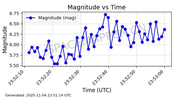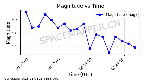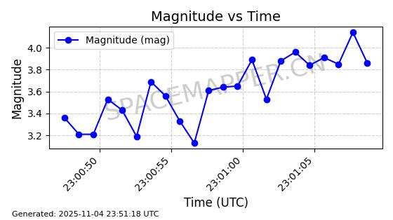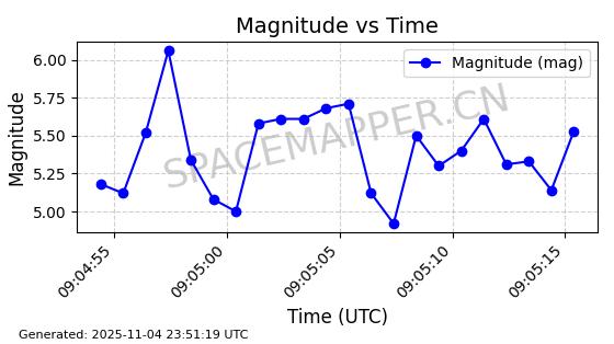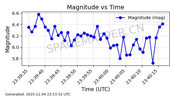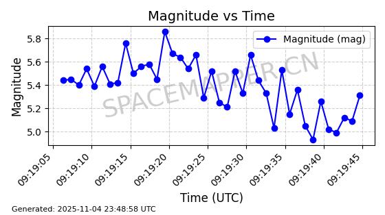 | STARLINK-4004 | 52656 | 52656 | 2022-05-18 同日期轨道 2022-053A 同批次轨道 | 在轨 | 95分钟 | 53.2174 | 538.276 | 540.842 | 0.0001854 | 2025-11-04 07:11:35 | ||