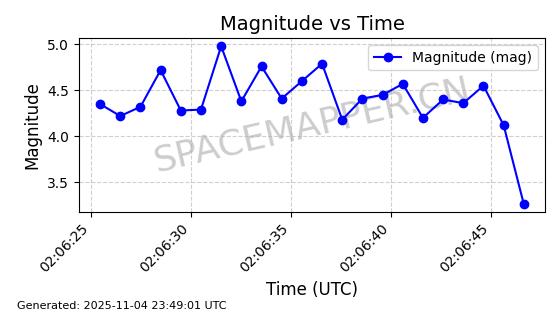 | STARLINK-4006 | 52676 | 52676 | 2022-05-18 同日期轨道 2022-053W 同批次轨道 | 在轨 | 95分钟 | 53.2182 | 538.795 | 540.695 | 0.0001373 | 2025-11-04 07:31:26 | ||