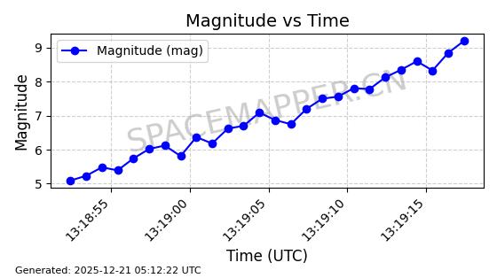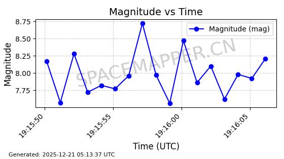 | STARLINK-4059 | 53250 | 53250 | 2022-07-24 同日期轨道 2022-086J 同批次轨道 | 在轨 | 95分钟 | 53.2160 | 538.704 | 540.796 | 0.0001512 | 2025-12-19 19:52:00 | ||