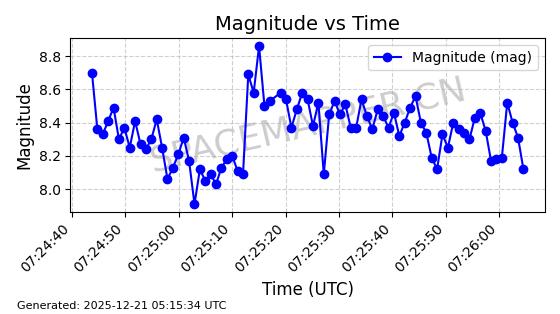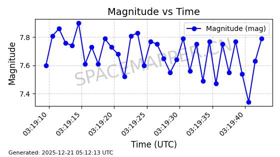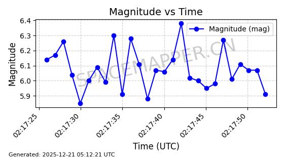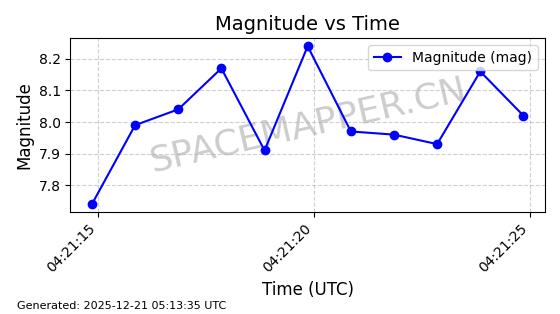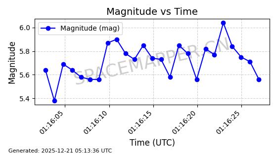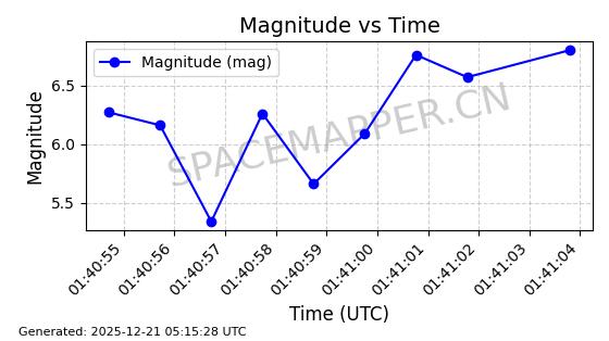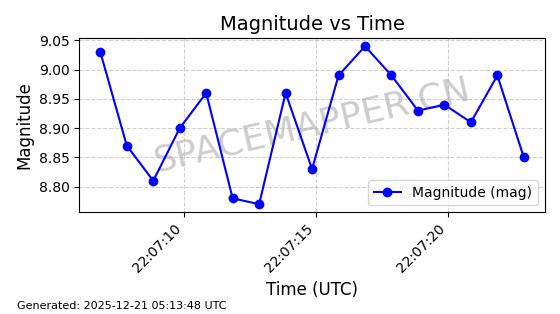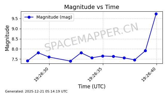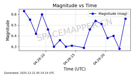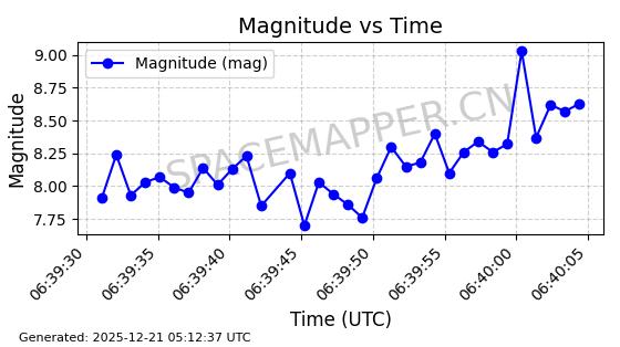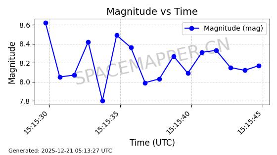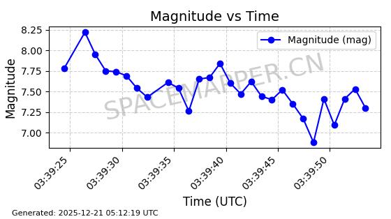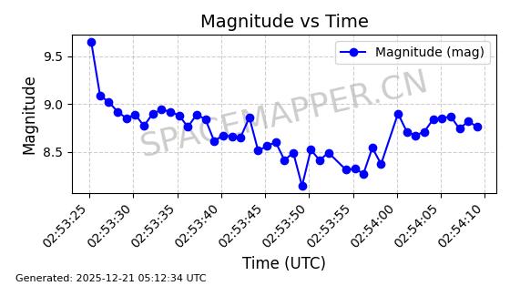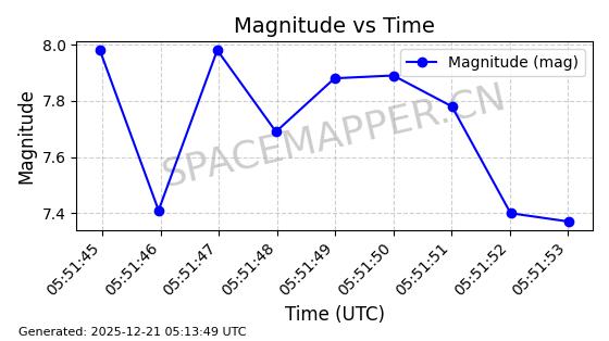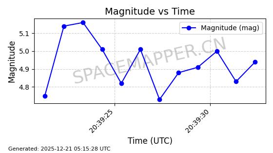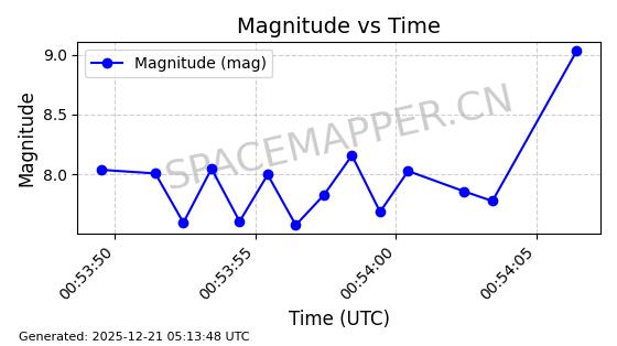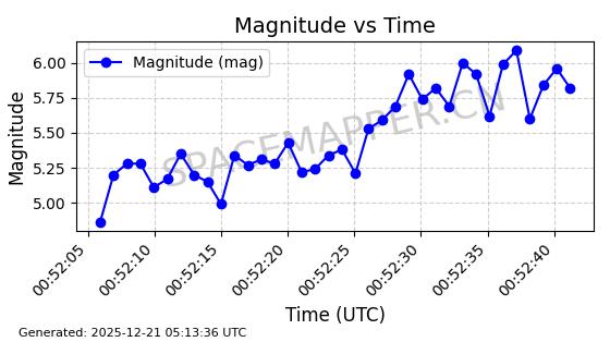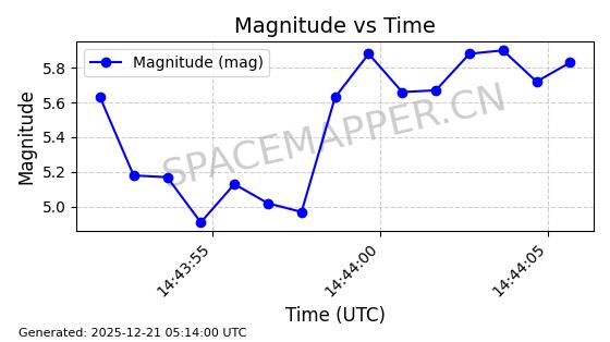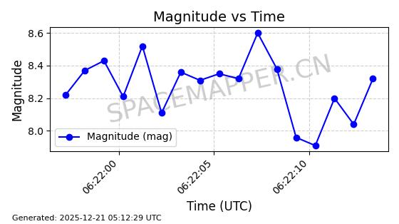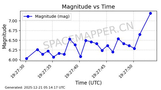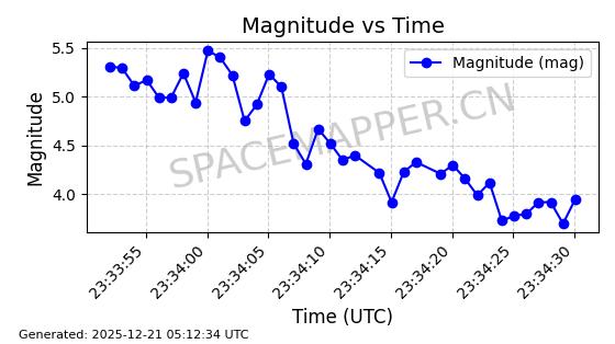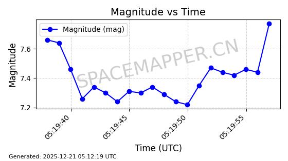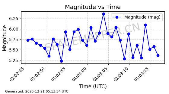 | STARLINK-4026 | 52600 | 52600 | 2022-05-14 同日期轨道 2022-052C 同批次轨道 | 在轨 | 95分钟 | 53.2197 | 538.668 | 540.874 | 0.0001594 | 2025-12-20 02:31:27 | ||