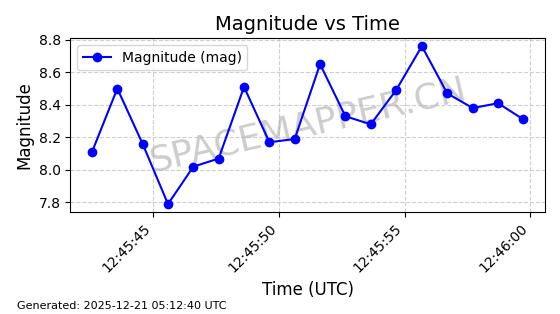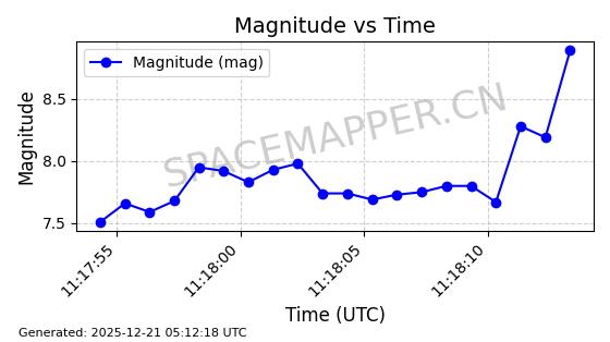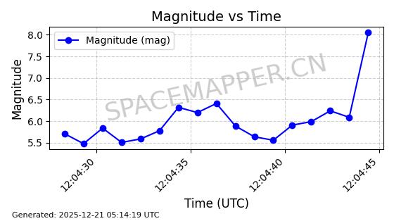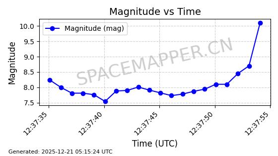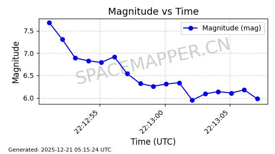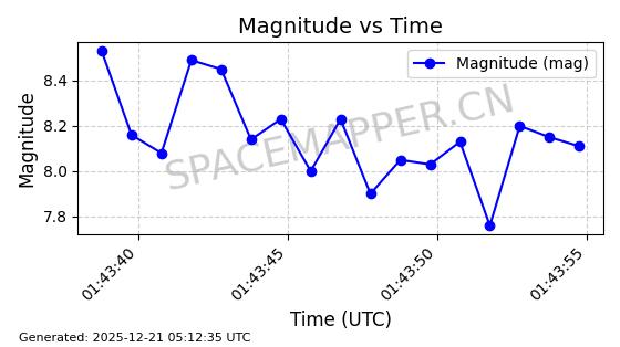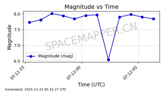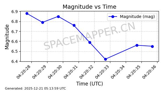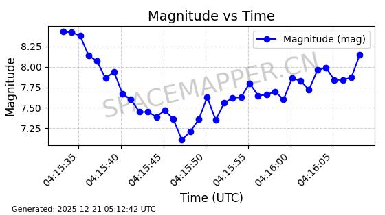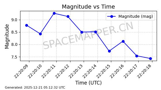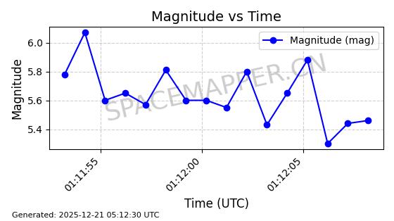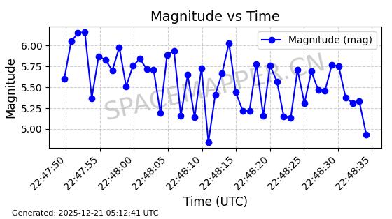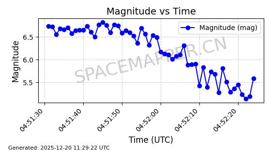 | STARLINK-4005 | 52686 | 52686 | 2022-05-18 同日期轨道 2022-053AG 同批次轨道 | 在轨 | 95分钟 | 53.2181 | 538.609 | 540.885 | 0.0001644 | 2025-12-20 03:30:29 | ||