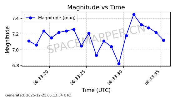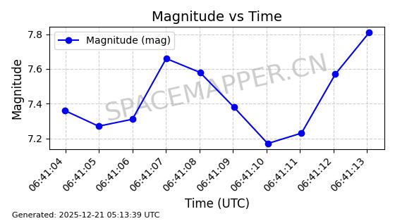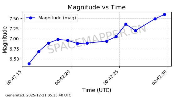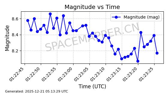 | STARLINK-4063 | 53132 | 53132 | 2022-07-17 同日期轨道 2022-083A 同批次轨道 | 在轨 | 90分钟 | 53.2100 | 254.134 | 256.404 | 0.0001711 | 2025-12-20 03:43:00 | ||