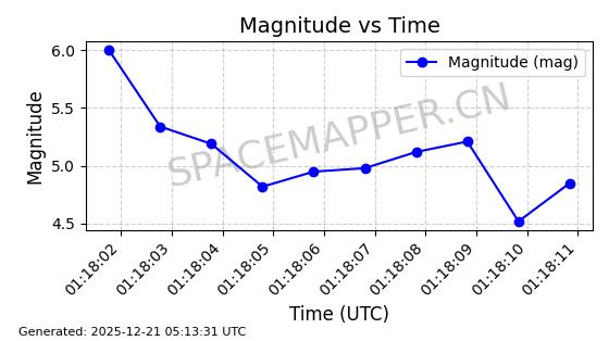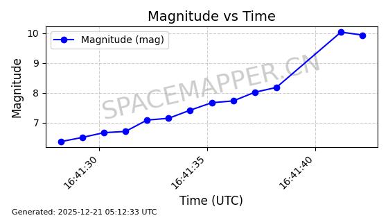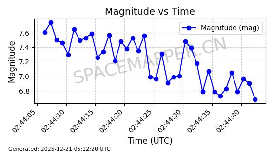 | STARLINK-4025 | 52696 | 52696 | 2022-05-18 同日期轨道 2022-053AS 同批次轨道 | 已陨落 | 87分钟 | 53.1911 | 142.336 | 144.95 | 0.0002003 | 2024-12-16 10:27:06 | ![]() | |