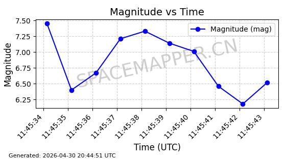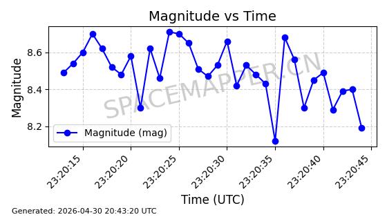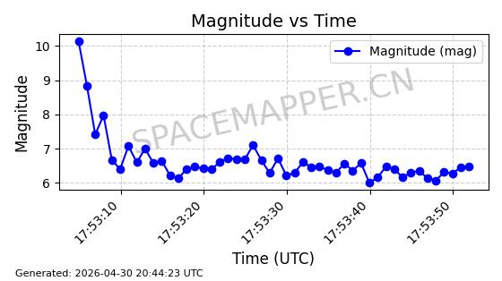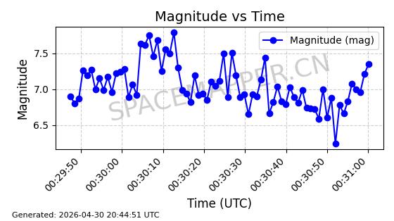 在轨 95分钟 53.2194 538.561 540.919 0.0001703 2026-04-30