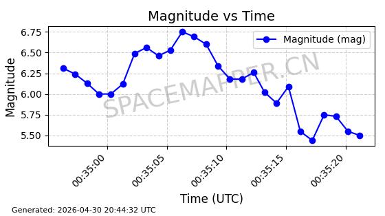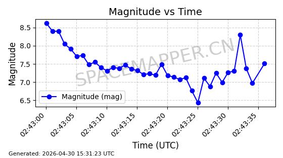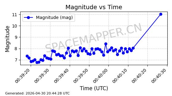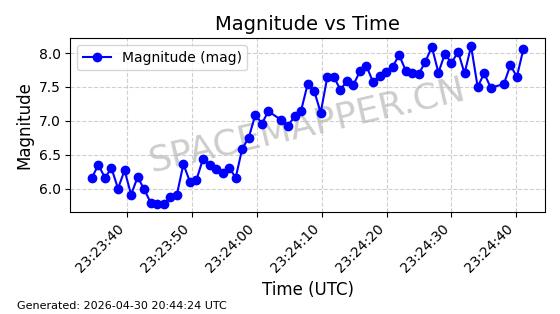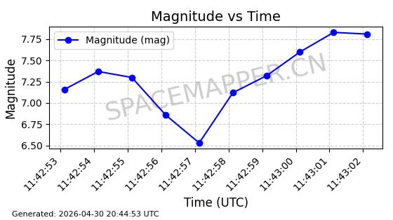 在轨 95分钟 53.2191 538.741 540.763 0.0001461 2026-04-30