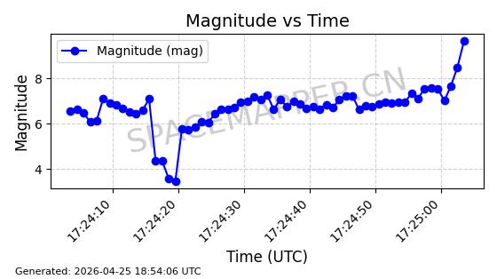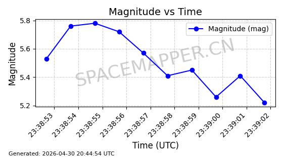 在轨 95分钟 53.2176 538.786 540.722 0.0001399 2026-04-30