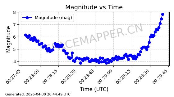 在轨 95分钟 53.2179 538.812 540.68 0.0001349 2026-04-29