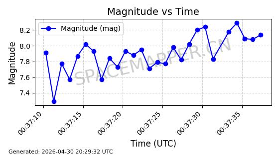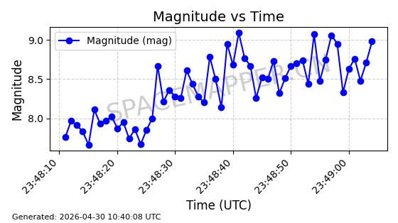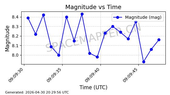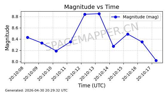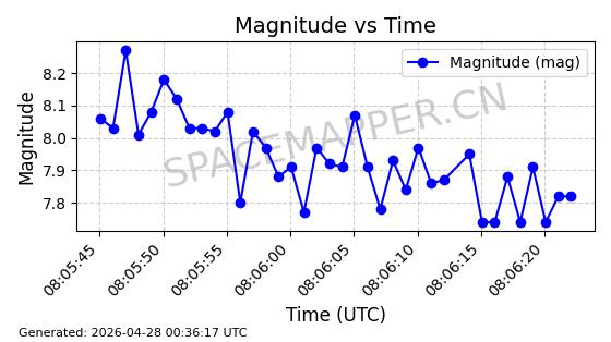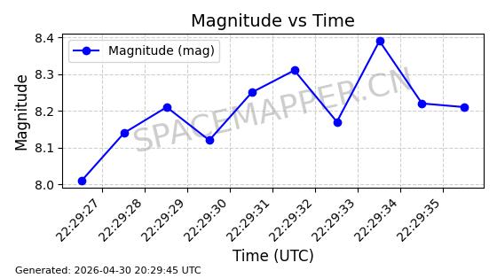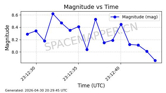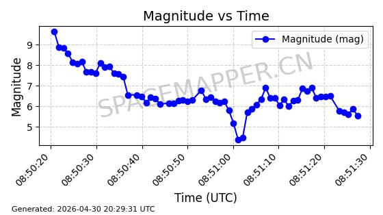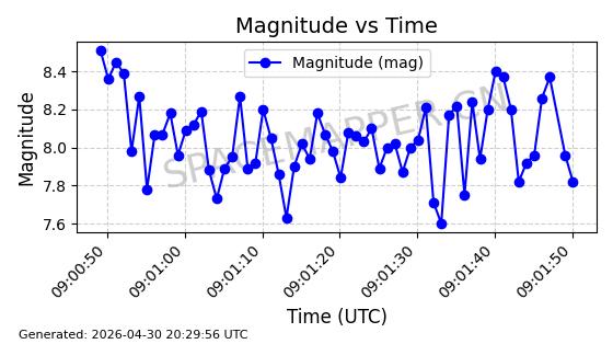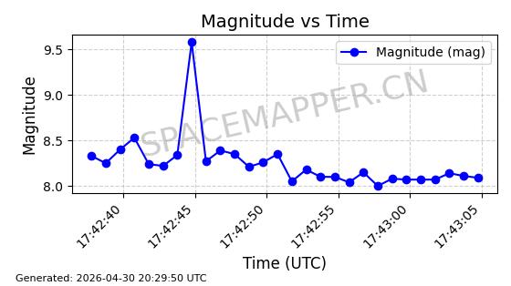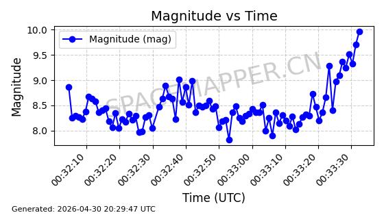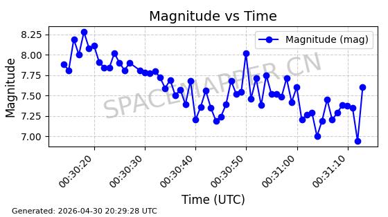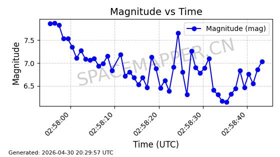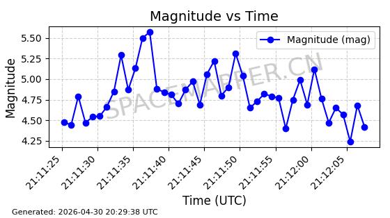 在轨 95分钟 53.2158 539.162 540.312 0.0000830 2026-04-29