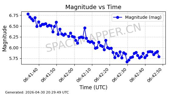 在轨 95分钟 53.2161 538.906 540.624 0.0001241 2026-04-29