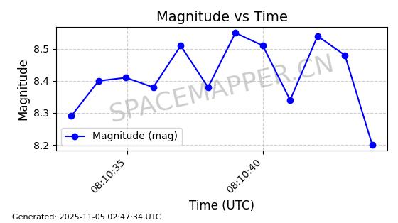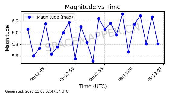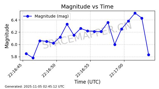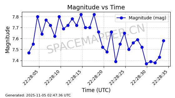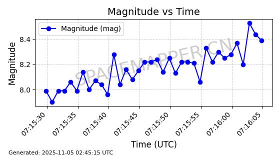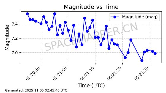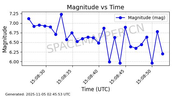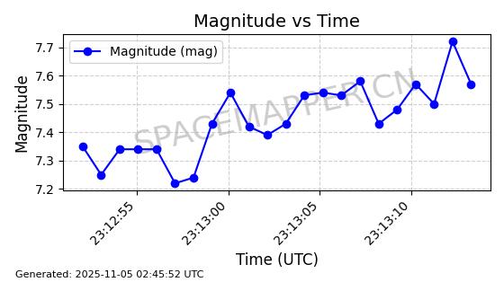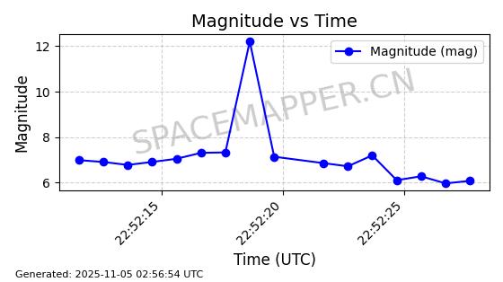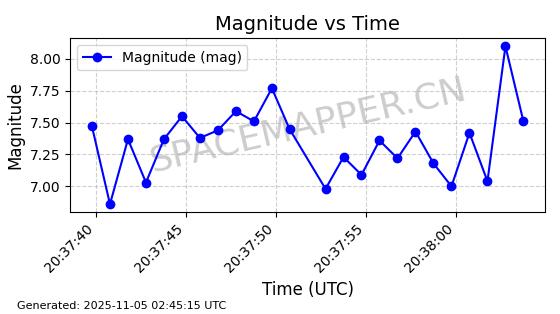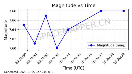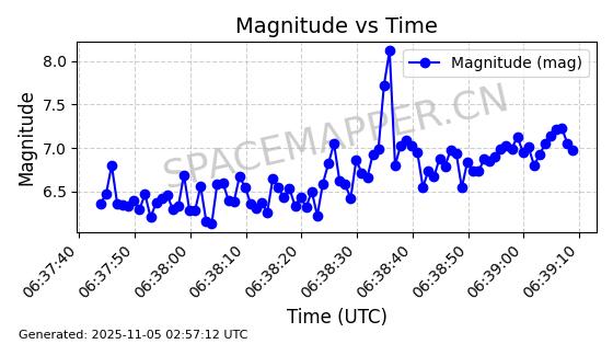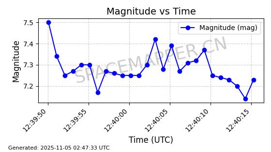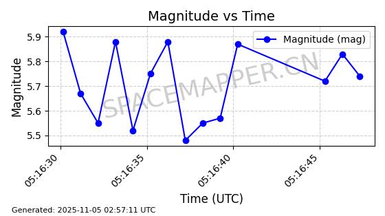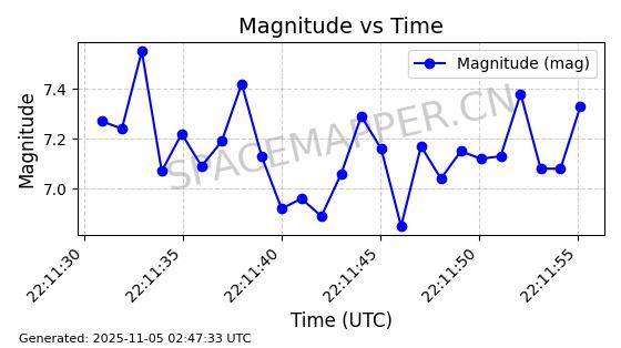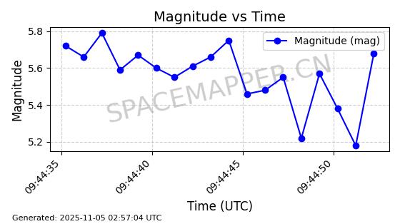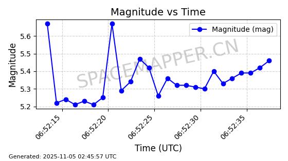 | STARLINK-4265 | 53011 | 53011 | 2022-07-07 同日期轨道 2022-076AB 同批次轨道 | 在轨 | 95分钟 | 53.2189 | 538.714 | 540.86 | 0.0001551 | 2025-11-04 05:49:26 | ||