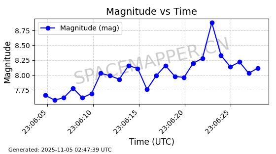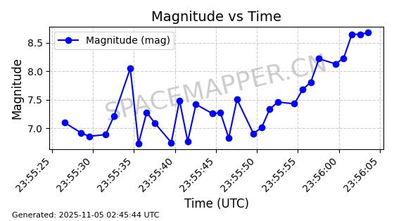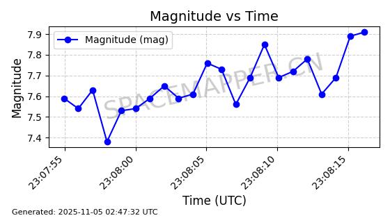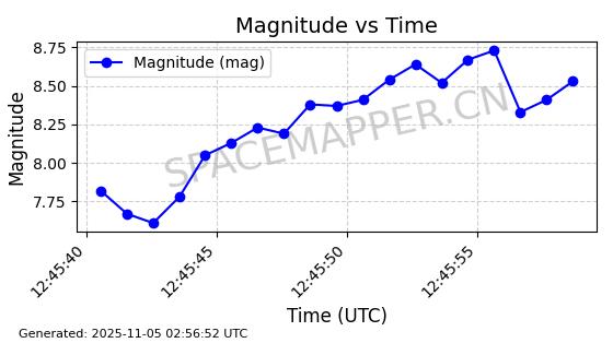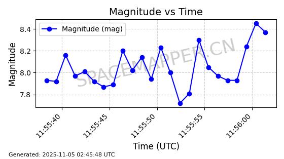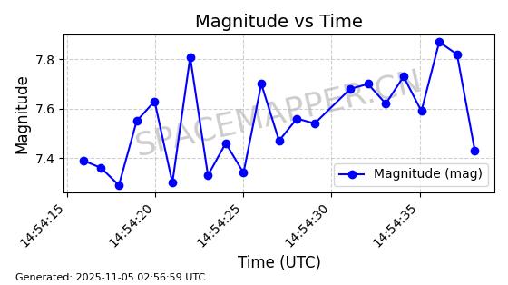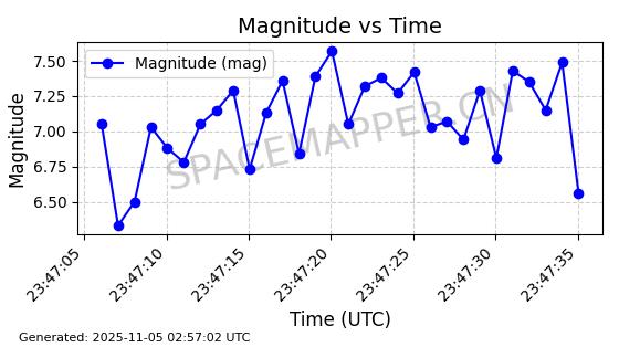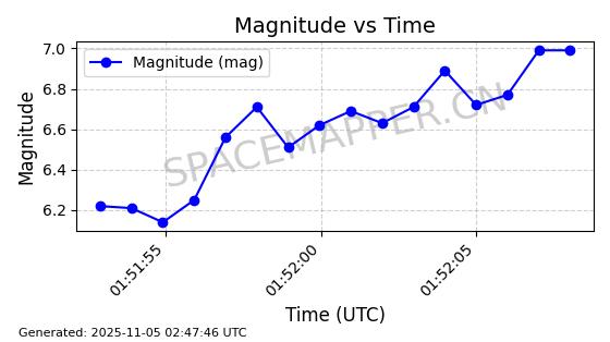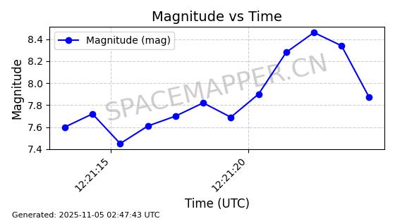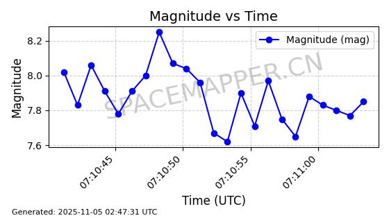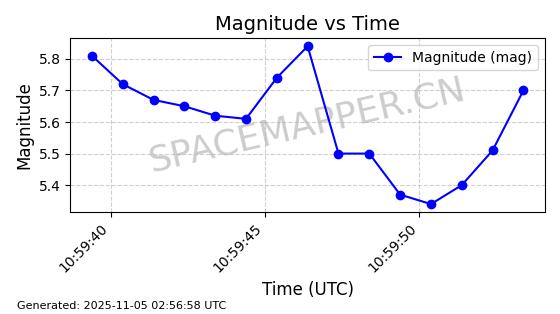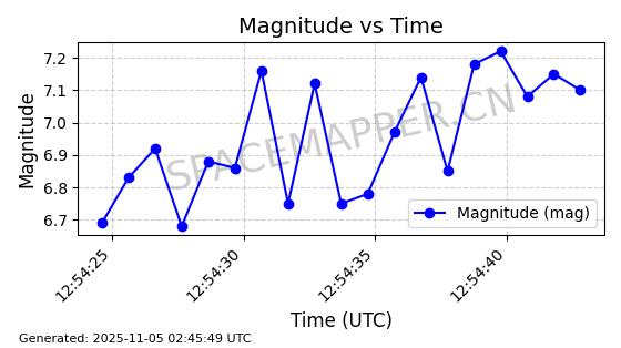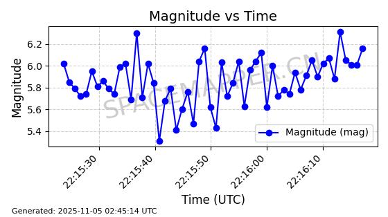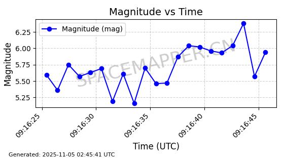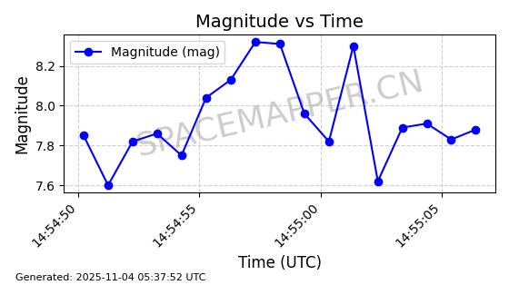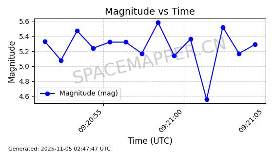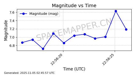 | STARLINK-4265 | 53011 | 53011 | 2022-07-07 同日期轨道 2022-076AB 同批次轨道 | 在轨 | 95分钟 | 53.2189 | 538.714 | 540.86 | 0.0001551 | 2025-11-04 05:49:26 | ||