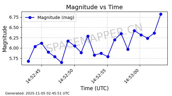 | STARLINK-4214 | 52877 | 52877 | 2022-06-17 同日期轨道 2022-062AZ 同批次轨道 | 在轨 | 95分钟 | 53.2169 | 538.541 | 540.971 | 0.0001755 | 2025-11-04 01:39:03 | ||