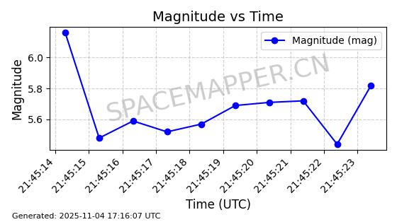 | STARLINK-4304 | 53414 | 53414 | 2022-08-10 同日期轨道 2022-097AC 同批次轨道 | 在轨 | 95分钟 | 53.2193 | 538.484 | 540.956 | 0.0001786 | 2025-11-04 07:15:32 | ||