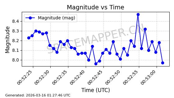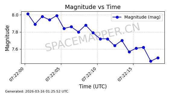 | 卫星名称 | AOE ID | NORAD ID | 发射日期 国际编号 | 在轨状态 | 轨道周期 | 轨道倾角 (度) | 近地点 (Km) | 远地点 (Km) | 偏心率 | 更新时间 (UTC) | 近期光变曲线 | 服务 |