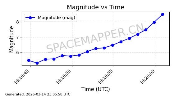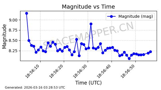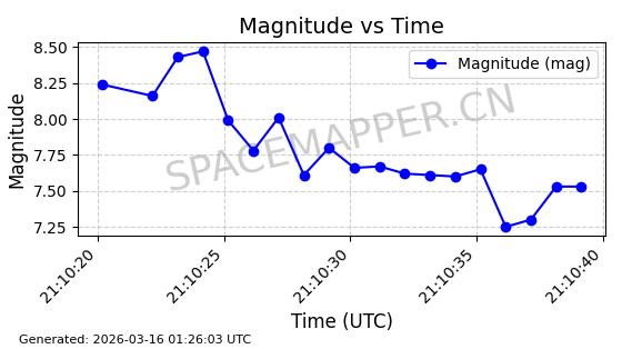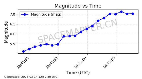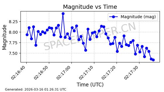 | STARLINK-30348 | 57712 | 57712 | 2023-08-27 同日期轨道 2023-129Q 同批次轨道 | 在轨 | 94分钟 | 42.9994 | 482.423 | 483.731 | 0.0000952 | 2026-03-15 06:00:01 | ||