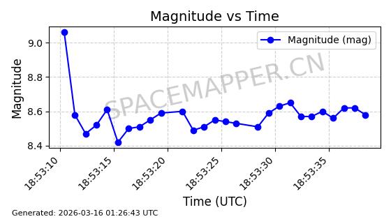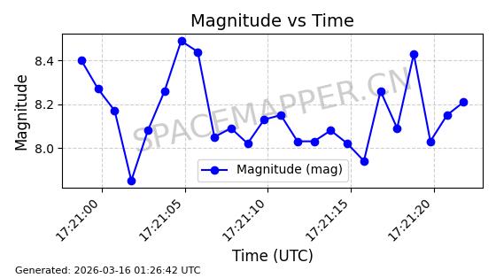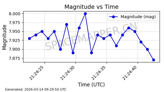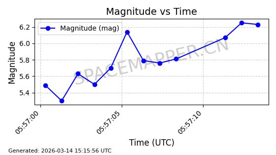 | STARLINK-30298 | 57665 | 57665 | 2023-08-22 同日期轨道 2023-124C 同批次轨道 | 在轨 | 94分钟 | 53.1603 | 474.525 | 475.923 | 0.0001019 | 2026-03-14 14:01:00 | ||