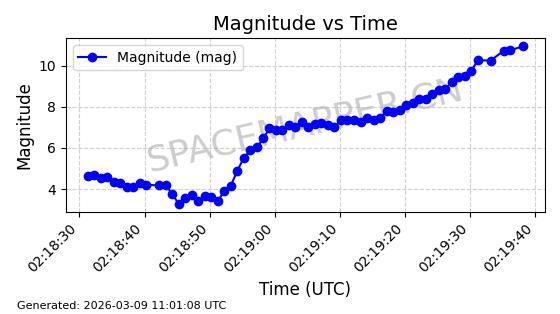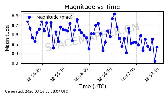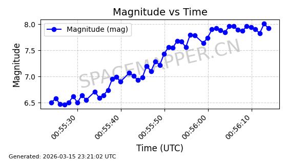 | STARLINK-30303 | 57677 | 57677 | 2023-08-22 同日期轨道 2023-124Q 同批次轨道 | 在轨 | 94分钟 | 53.1607 | 474.479 | 475.939 | 0.0001065 | 2026-03-14 14:16:01 | ||