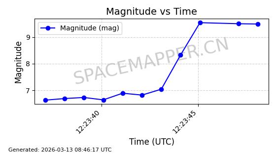 | STARLINK-30323 | 57634 | 57634 | 2023-08-17 同日期轨道 2023-122C 同批次轨道 | 在轨 | 94分钟 | 43.0014 | 485.228 | 486.45 | 0.0000890 | 2026-03-15 06:00:01 | ||